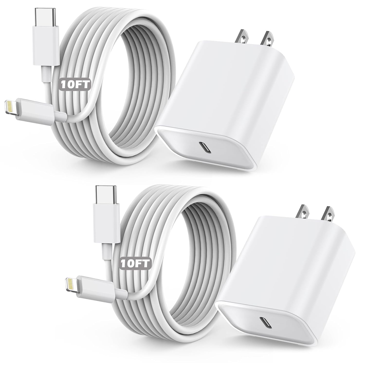 - What You Get:2-Pack 10Feet/3M USB C to Lightning iPhone charging cable with 2-Pack 20W PD fast charger block.Please feel free to contact us. We would offer the most professional and prompt respond within 24 Hours