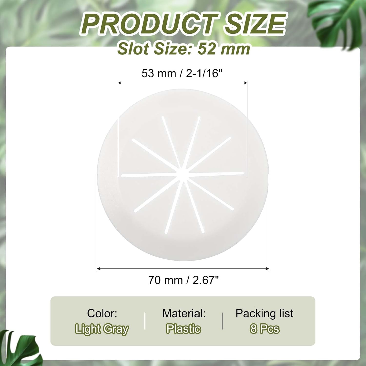 - Color: Light Gray; Material: Plastic; Inner Diameter: 53 mm / 2-1/16"; Slot Size: 52 mm / 2.05 inch; Total Size: 70 mm / 2.76 inch; Packing List: 8 Pcs x Desk Grommet