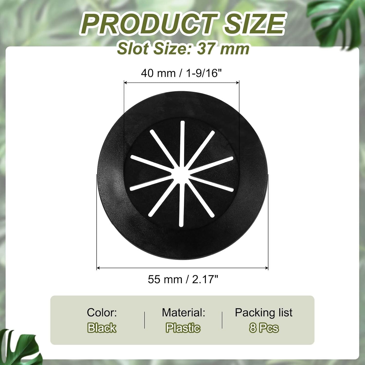 - Color: Black; Material: Plastic; Inner Diameter: 40 mm / 1-9/16"; Slot Size: 37 mm / 1.46 inch; Total Size: 55 mm / 2.17 inch; Packing List: 8 Pcs x Desk Grommet