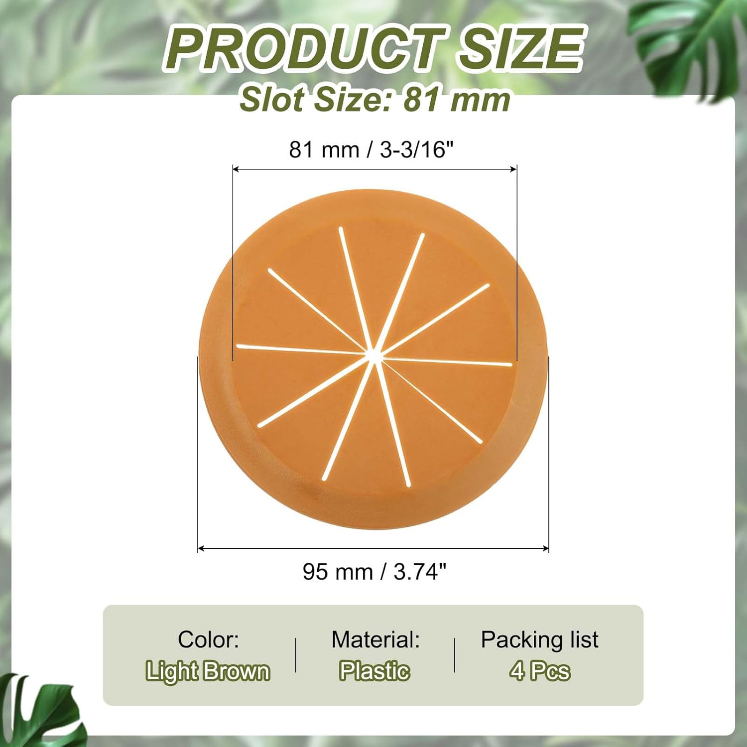 - Color: Light Brown; Material: Plastic; Inner Diameter: 81 mm / 3-3/16"; Slot Size: 81 mm / 3.19 inch; Total Size: 95 mm / 3.74 inch; Packing List: 4 Pcs x Desk Grommet