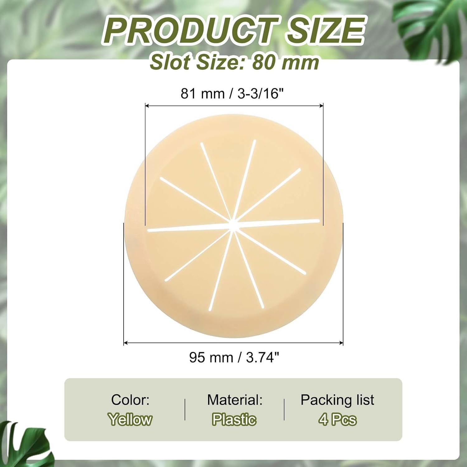 - Color: Yellow; Material: Plastic; Inner Diameter: 81 mm / 3-3/16"; Slot Size: 80 mm / 3.15 inch; Total Size: 95 mm / 3.74 inch; Packing List: 4 Pcs x Desk Grommet