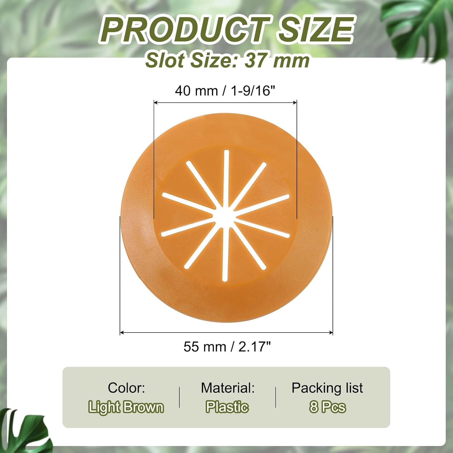- Color: Light Brown; Material: Plastic; Inner Diameter: 40 mm / 1-9/16"; Slot Size: 37 mm / 1.46 inch; Total Size: 55 mm / 2.17 inch; Packing List: 8 Pcs x Desk Grommet