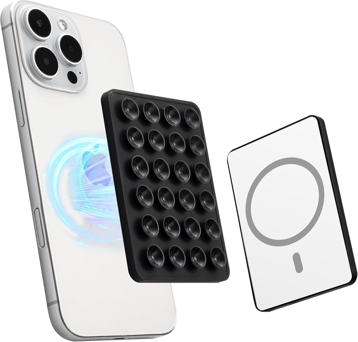 Sucky Upgraded Magnetic Suction Cell Phone Grip for MagSafe Case, Silicone Octo Cup Buddy Holder, Durable Magnet Phone Accessory for iPhone and Android (Black)
