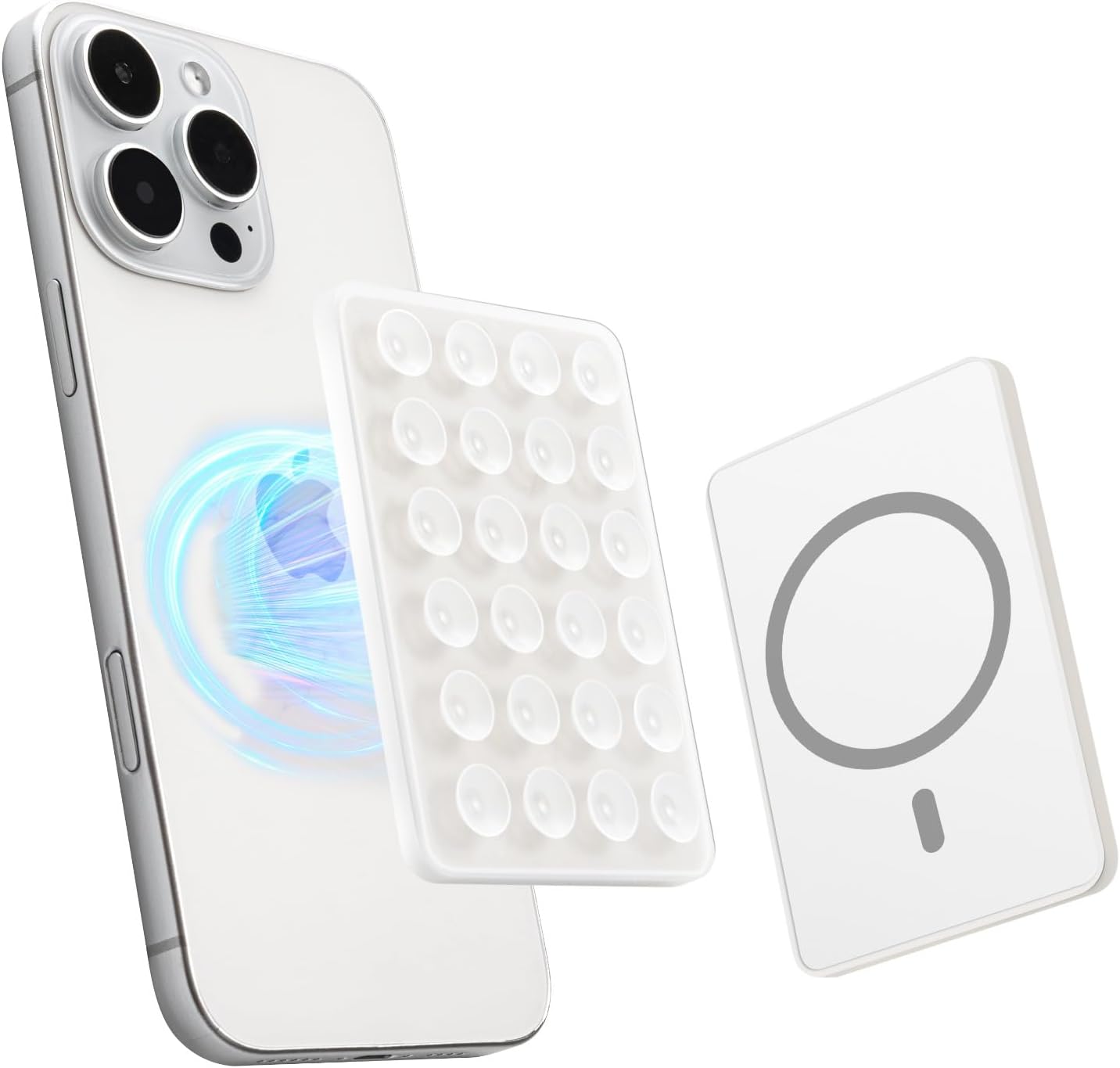 Sucky Upgraded Magnetic Suction Cell Phone Grip for MagSafe Case, Silicone Octo Cup Buddy Holder, Durable Magnet Phone Accessory for iPhone and Android (Clear)