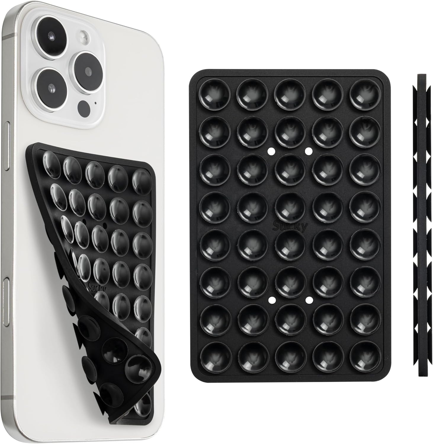 SUCKY Silicone Suction Phone Case Adhesive Mount - Anti-Slip Holder, Hands-Free Fidget Toy, Phone Accessory for iPhone and Android (Deep Black, Double V2)