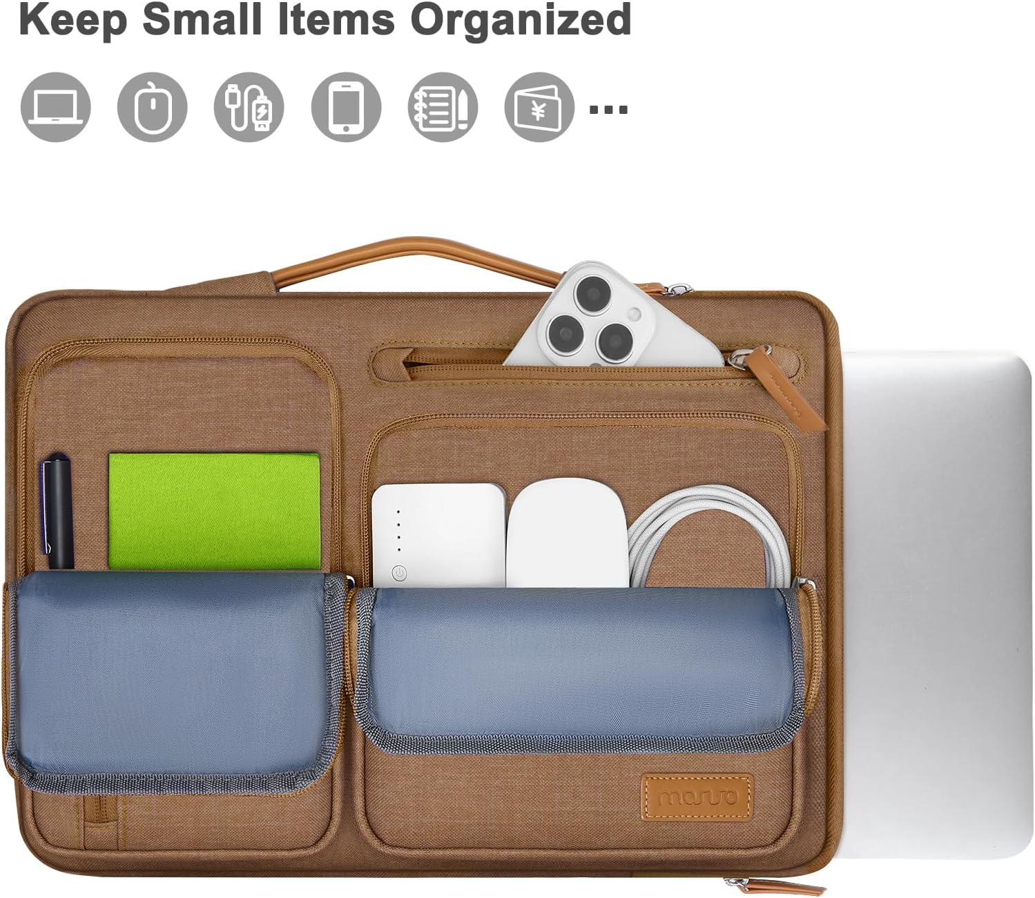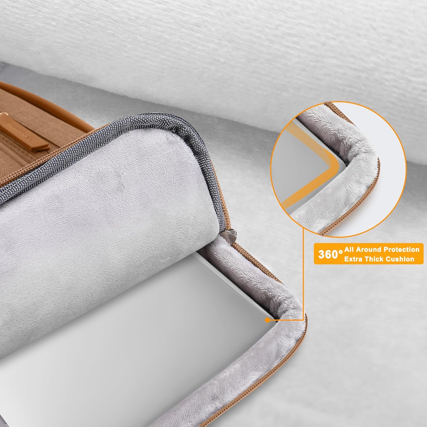 MOSISO 360 Protective Laptop Case 13.3 inch, 13-13.3 inch Laptop Sleeve Compatible with MacBook Air/Pro 13 / Pro 14,HP Dell Acer ASUS,Side Open Carrying Case with 4 Zipper Pockets&Handle, Mocha