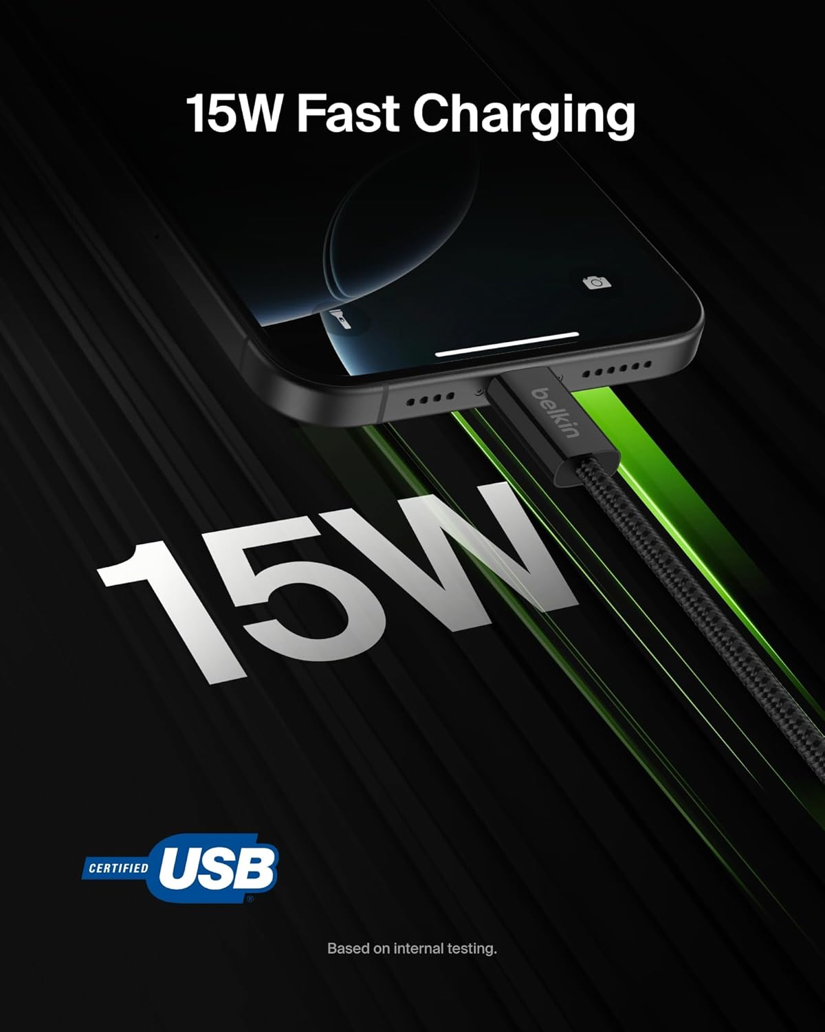 - FAST CHARGING FOR YOUR DEVICES: The Belkin BoostCharge USB-C Cable delivers 15W of power to fast charge your Apple iPhone 16 from 0-50% in as little as 45 minutes*, as well as charge a Samsung Galaxy S25, Google Pixel 9, and more at sufficient speeds.