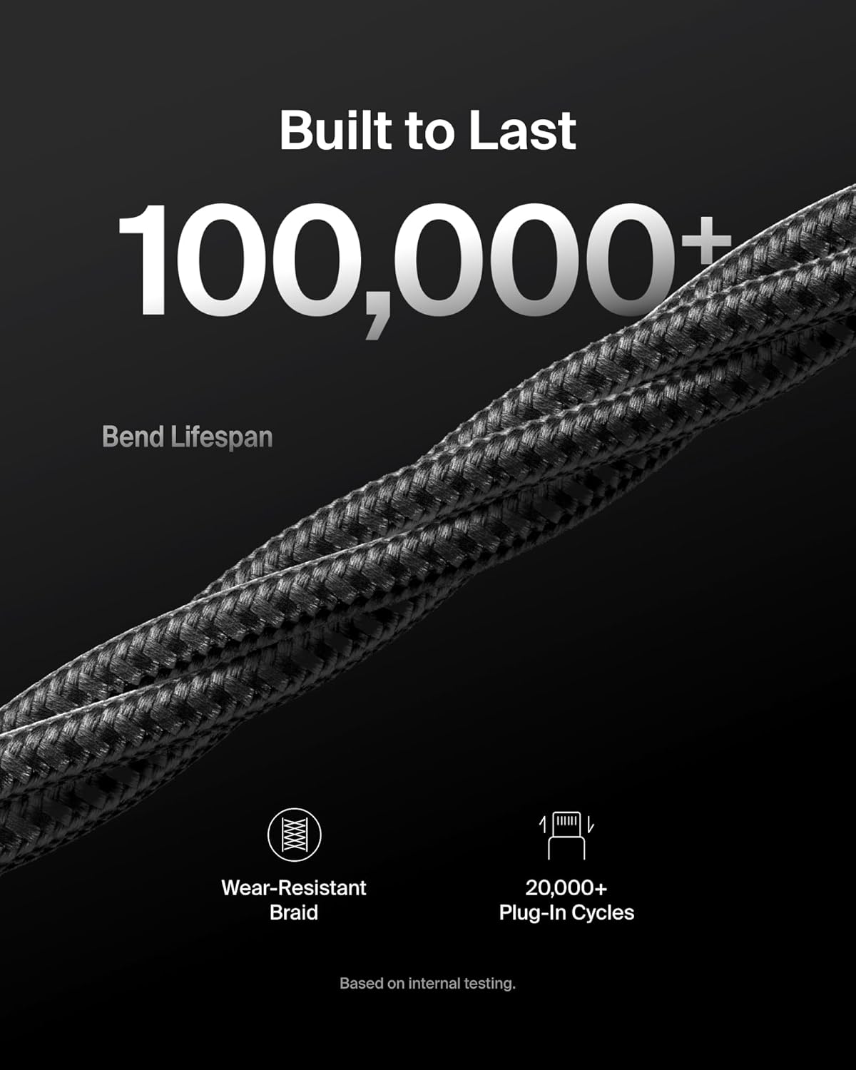 - SUPERIOR DURABILITY: The soft, flexible cable features a braided nylon exterior for durability and sustainability; tested to withstand 25,000+ bends and 10,000+ plug-ins for up to 25x the lifespan of standard USB-C cables.**