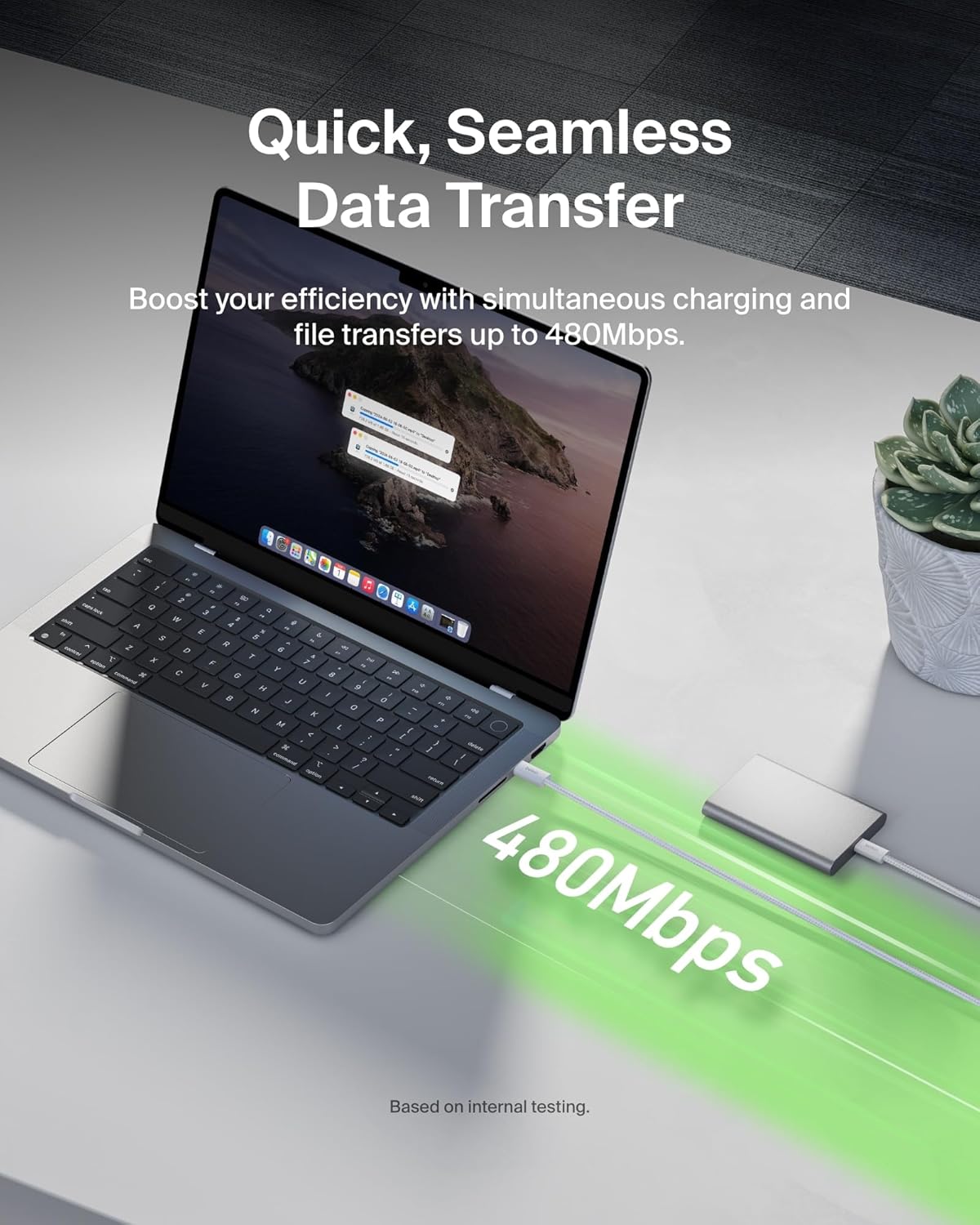 - FAST CHARGING FOR YOUR DEVICES: The Belkin BoostCharge USB-C Cable delivers 60W of power to fast charge your Apple iPhone 16 from 0-50% in as little as 25 minutes*, as well as charge a Samsung Galaxy S25, Google Pixel 9, and more at lightning speeds.