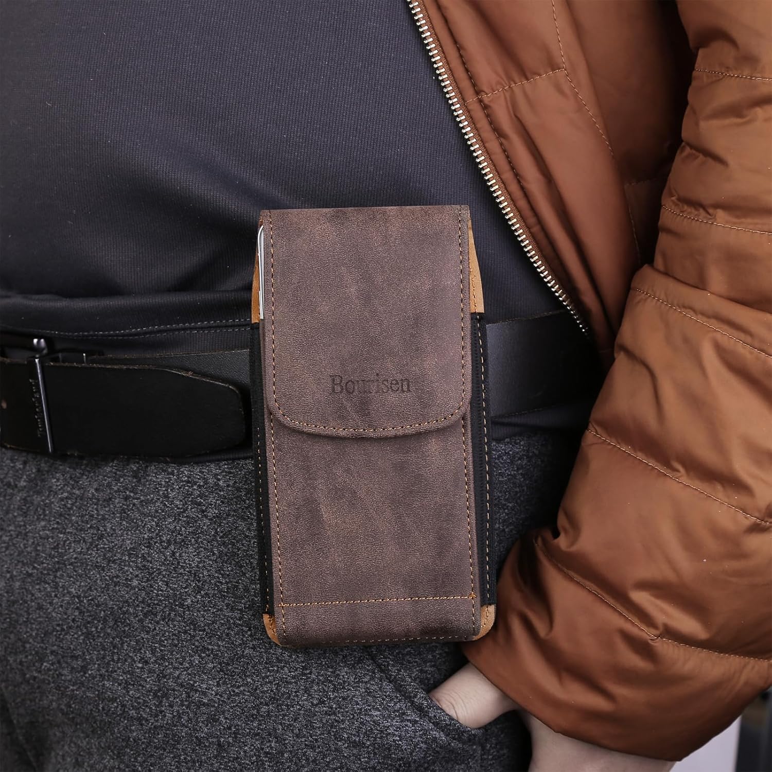 Universal Phone Holster Phone Pouch Case Belt Clip Belt Loops Card Slot Faux Leather for Man iPhone 17/16/15pro max,16/15Plus,Samsung S25 24 S23 S22 Ultra (Brown&Yellow, XL(6.6"x3.4"x0.8"))