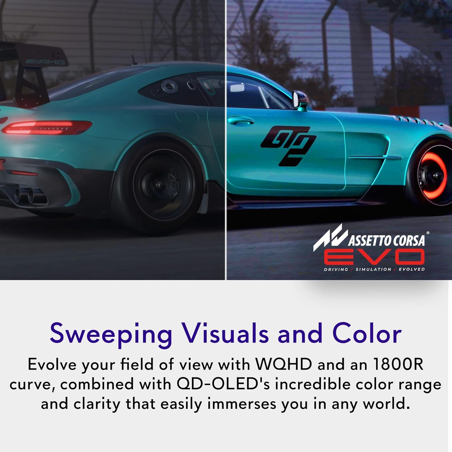 - Sweeping visuals and color: Evolve your field of view with WQHD and an 1800R curve, combined with QD-OLED's incredible color range and clarity that easily immerses you in any world.