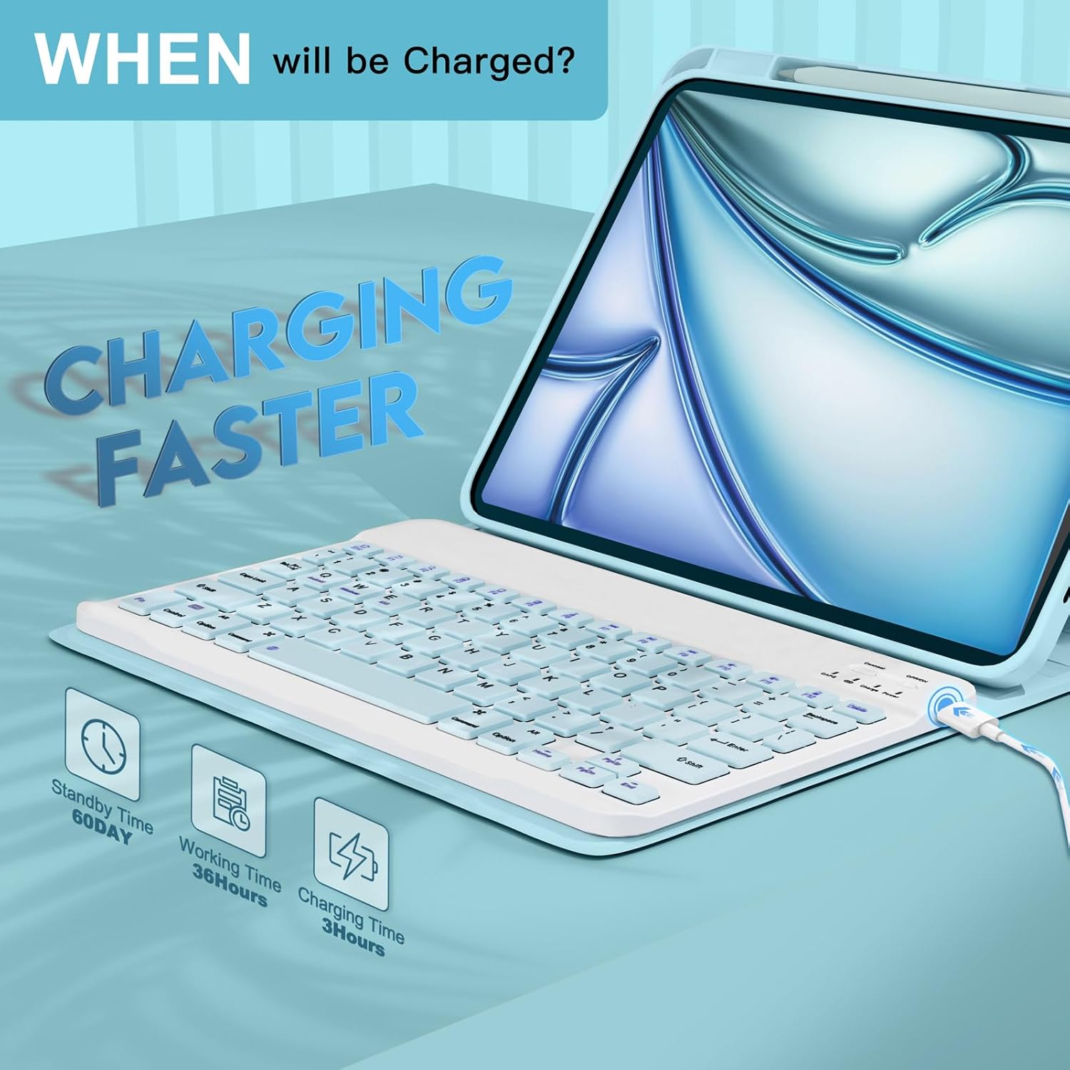 - 【Long Life Battery & Fast Charging】ipad a16 case with keyboard comes with a large capacity battery, which is more energy-efficient and low-power. The ipad a16 case keyboard comes with a Type-C charging cable, which can be fully charged in 2-3 hours and can be used for 60 hours; when not in use, it can be in standby mode for 800 hours.