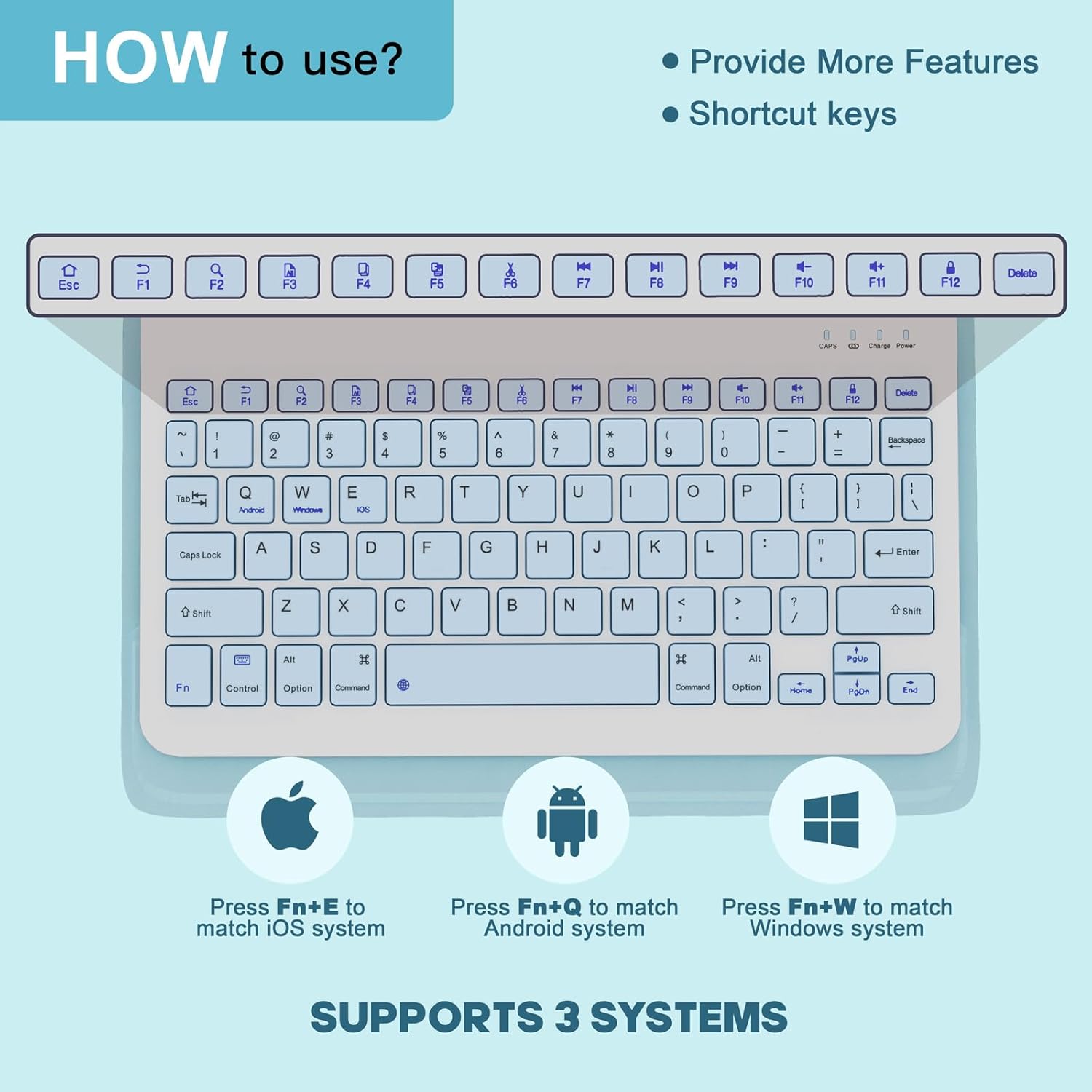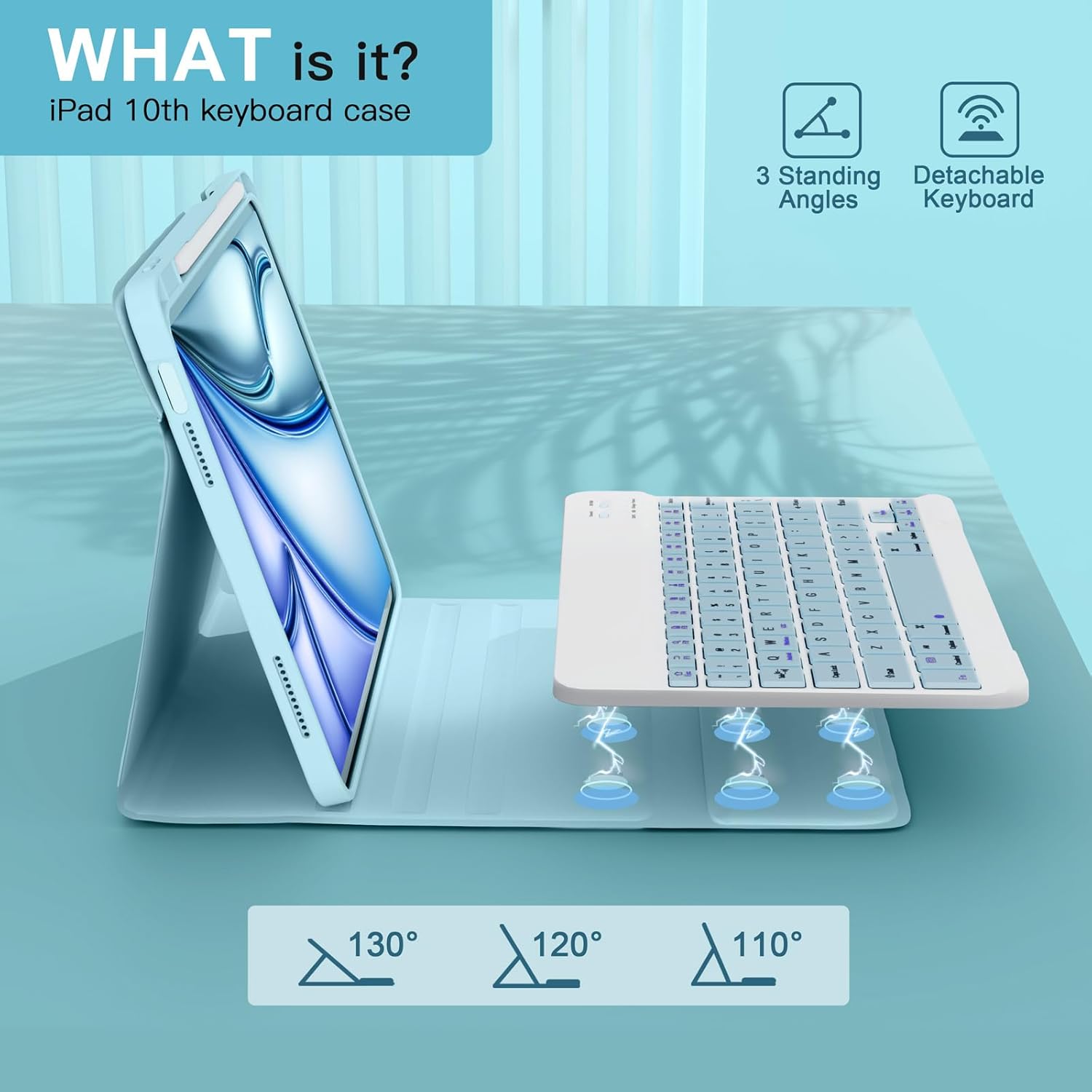 NOKBABO for iPad 11th 10th Generation Case with Keyboard, Magnetic Wireless Detachable Folio case with Pencil Holder, Keyboard for iPad 11th(A16,2025) & ipad 10th Generation(2022) - Sky Blue