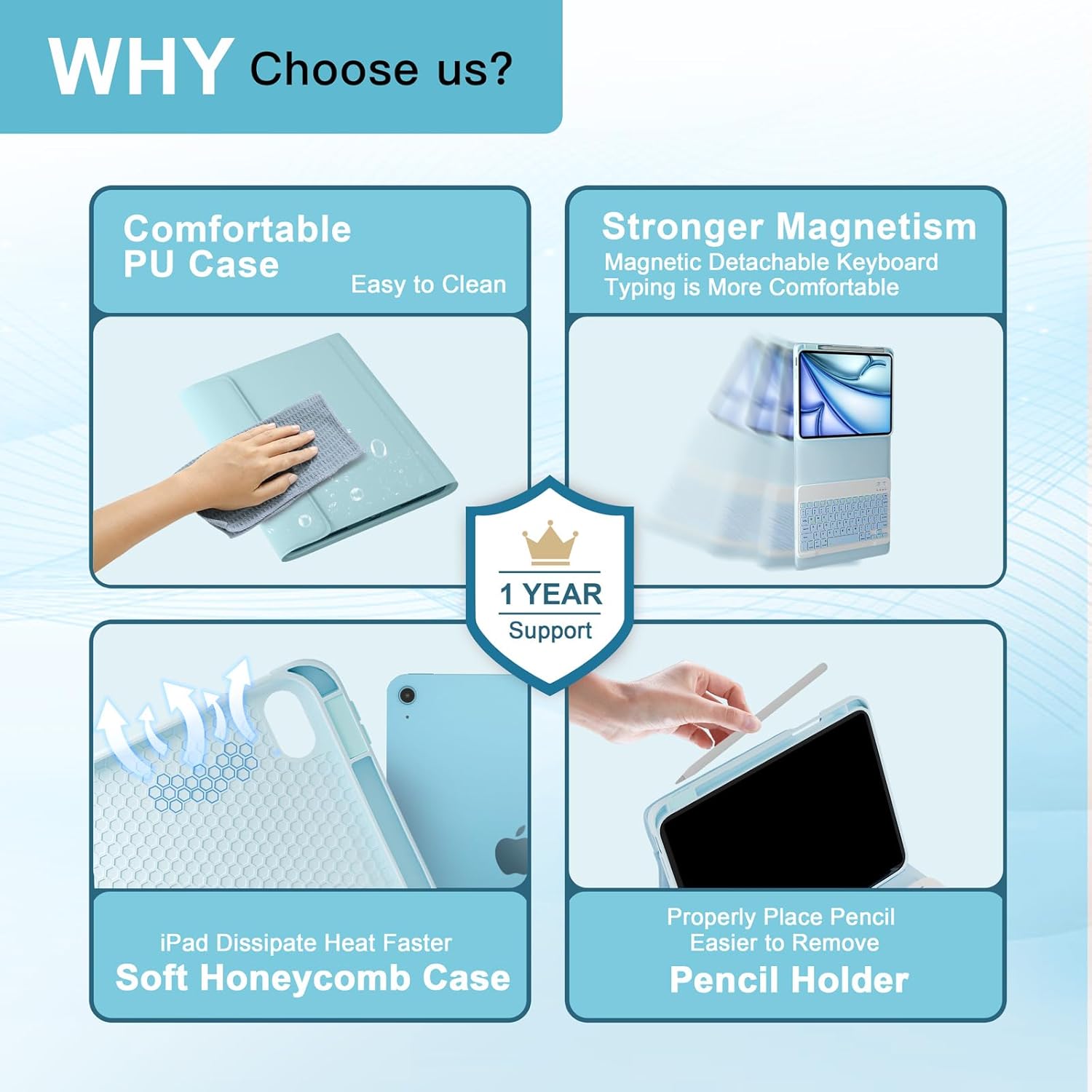 - 【1-Year Product Support】 ipad A16 case with keyboard has 1-year product support, making your purchase more reassuring. If you have any questions, our 24/7 customer service team will be available to assist you at any time.