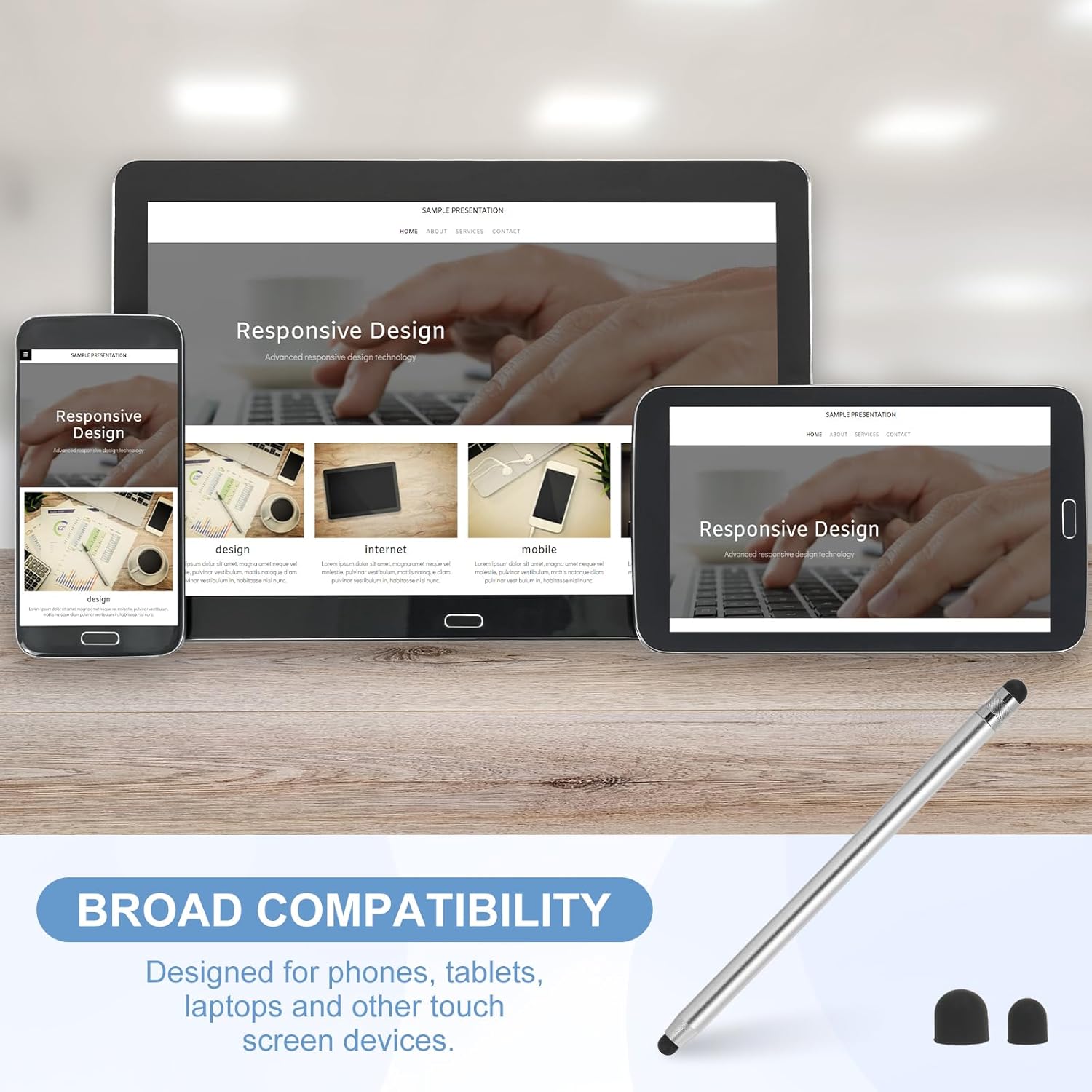 PATIKIL 5 Pcs Stylus Pens for Touch Screens, 2 in 1 High Sensitivity Universal Pen Capacitive Stylus for Phone Tablets Laptop Touch Screen Devices, Silver