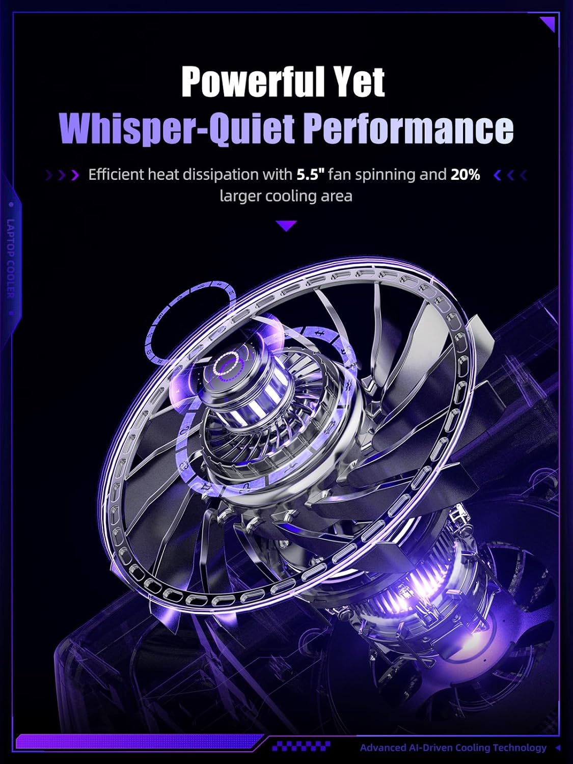 - SMART TEMPERATURE CONTROL WITH Myth.cool SOFTWARE: Featuring three smart modes—Low, Medium, and High Speed—the V12 Ultra gaming laptop cooling pad automatically adjusts fan speed based on your laptop's workload. This ensures efficient cooling with minimal noise, tailored to your usage scenario. Smart Cooling for Smarter Performance!