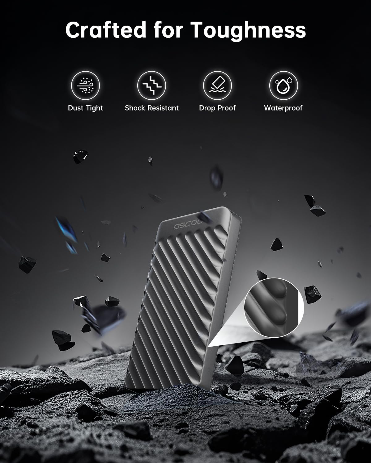 - Rugged, Reliable, Ready: Encased in a durable aluminum shell for effective heat dissipation and drop protection. Features AES-256 encryption, SMART monitoring, and advanced error correction to keep your data safe, even in demanding field conditions. Works Where You Do: Plug-and-play with laptops, desktops, cameras, projectors, and more. Includes USB-C to USB-A and USB-C cables for effortless use across Windows, macOS, Linux, Android, and USB-C-enabled iOS devices