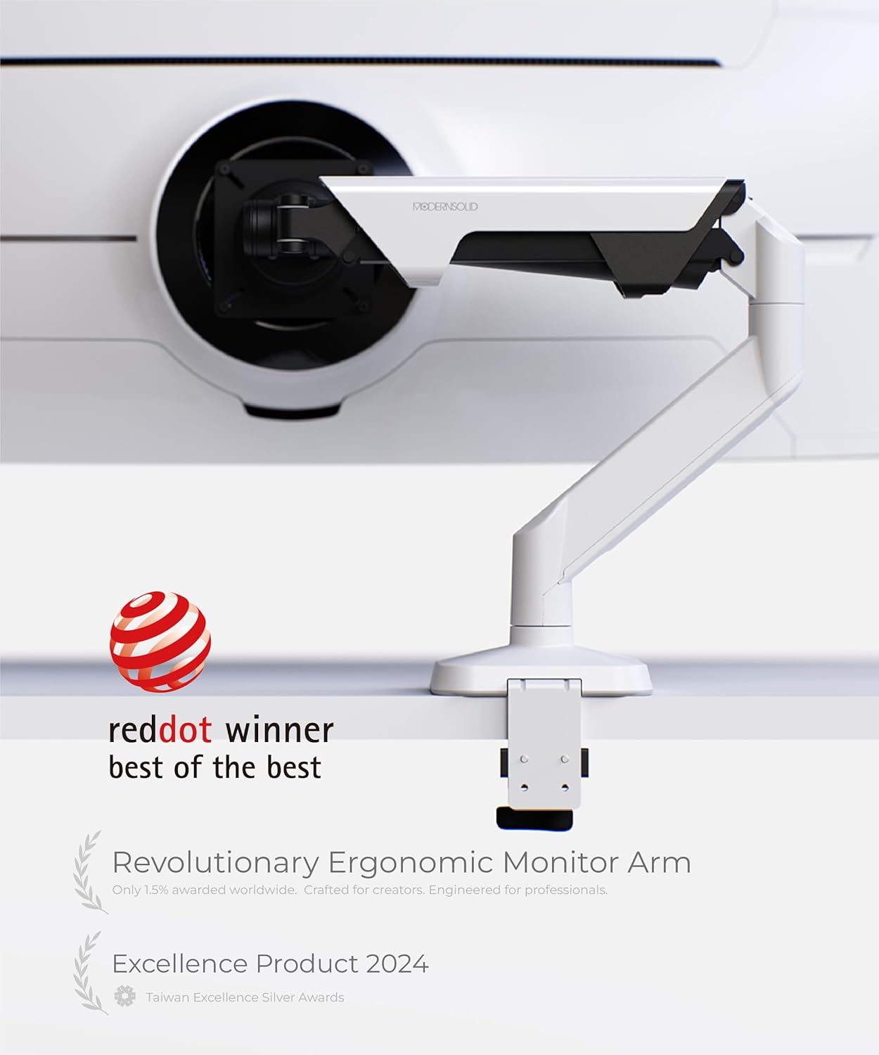 - AWARD-WINNING MINIMALIST DESIGN THAT PERFORMS It’s not just functional—it’s a statement. Recognized with the Red Dot Best of the Best award, this mount pairs strength and seamless motion with modern minimalism. A refined upgrade that fits perfectly in home offices, studios, and creative workspaces.