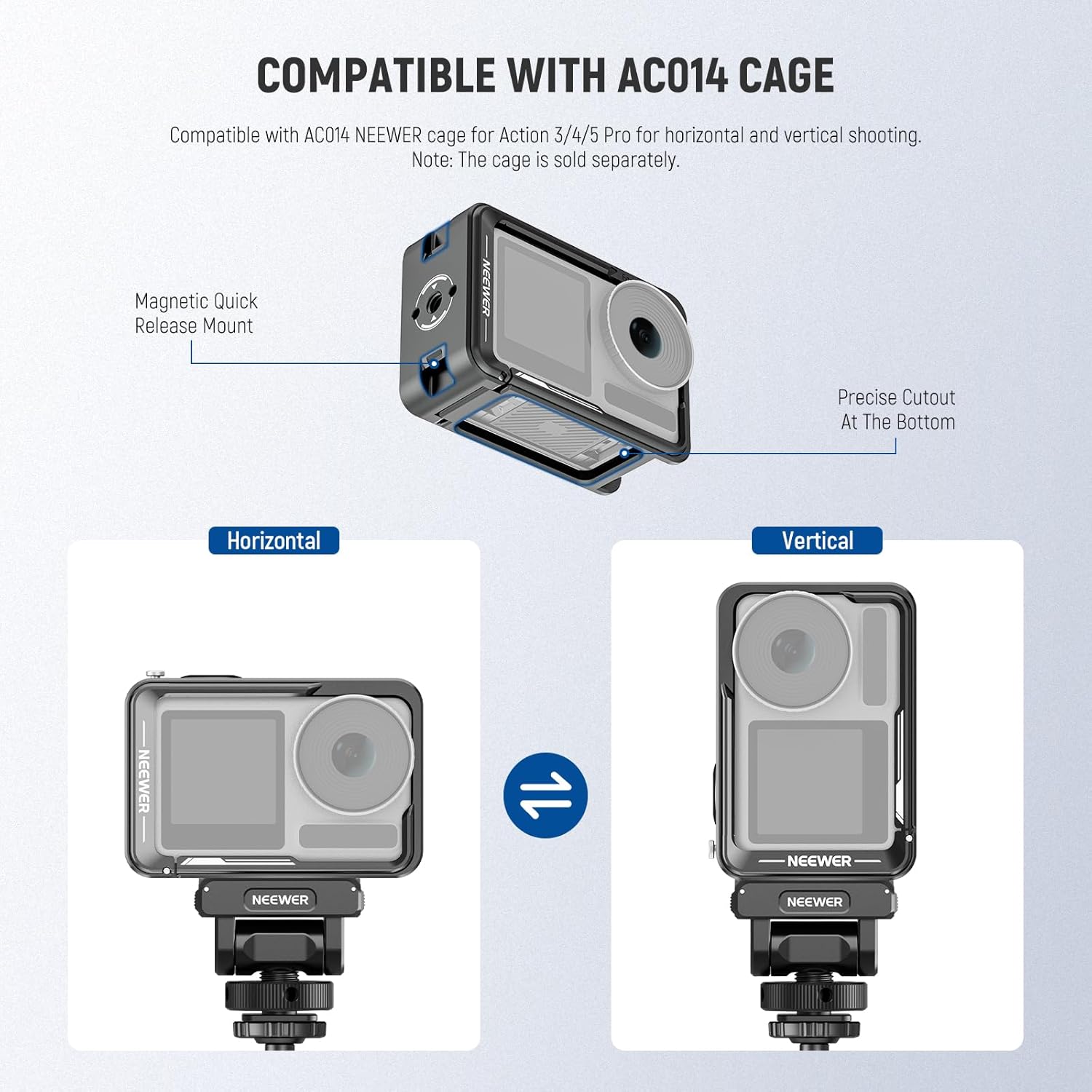 - 【Designed for Action 5 Pro / 4 / 3】 Compatible with DJI Osmo Action 5 Pro, Action 4, and Action 3, this action camera accessories quickly and securely attaches via quick release slots for an instant setup. Ideal for content creator essential action camera photography accessories and influencer must have gear
