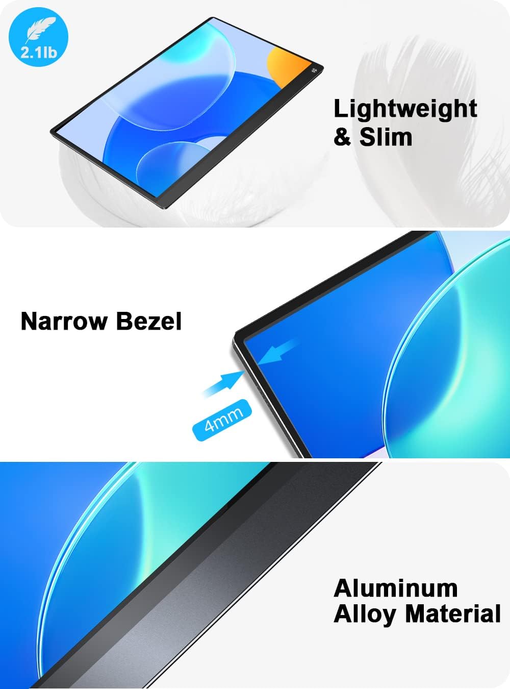 - Recyclable Aluminum Material: Our portable touchscreen monitors use high-quality aluminum not only for their modern aesthetics and durable strength, but also for their sustainable future. This is a responsible innovation, unlike plastic, aluminum can be recycled without losing quality, which means it is not only durable but also friendly