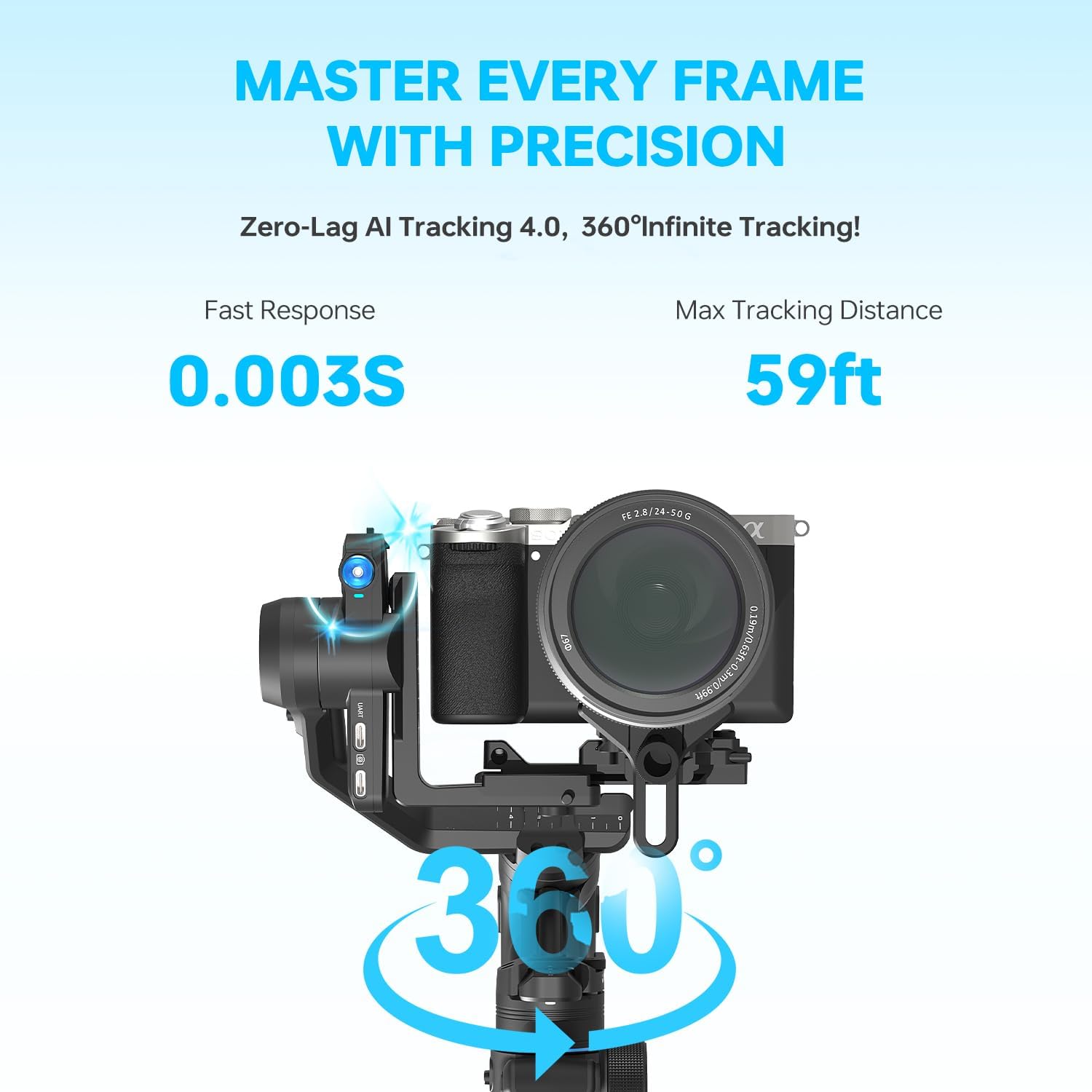 - [AI Tracking 4.0] Unlock pro-level creativity with the FeiyuTech SCORP Mini 3 Pro 3-axis gimbal stabilizer——Enjoy 0.003s response time, 360° infinite pan, up to 39ft range, and a 15% wider tracking view—powered by our enhanced AI algorithm. With the smarter built-in module, you’ll never miss a moment.