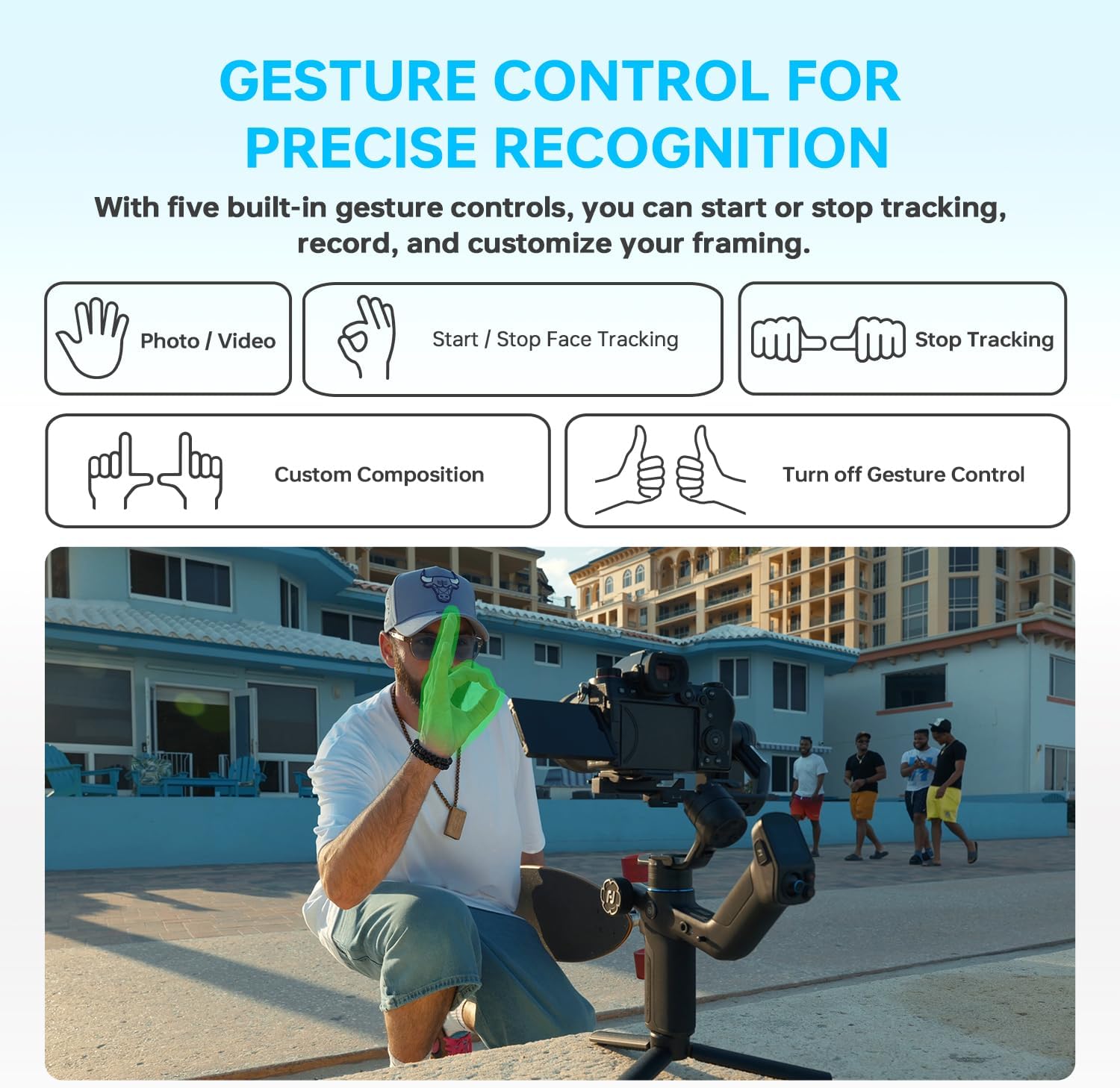 - [Ultra-Stable Gimbal for Cinematic Shots] Powered by Stabilization 10.0 and our latest 2025 quaternion algorithm, this gimbal keeps your footage smooth and shake-free—even in fast-paced scenes. Capture professional, cinematic-quality results anytime, anywhere, ideal for action, travel or vlogging.