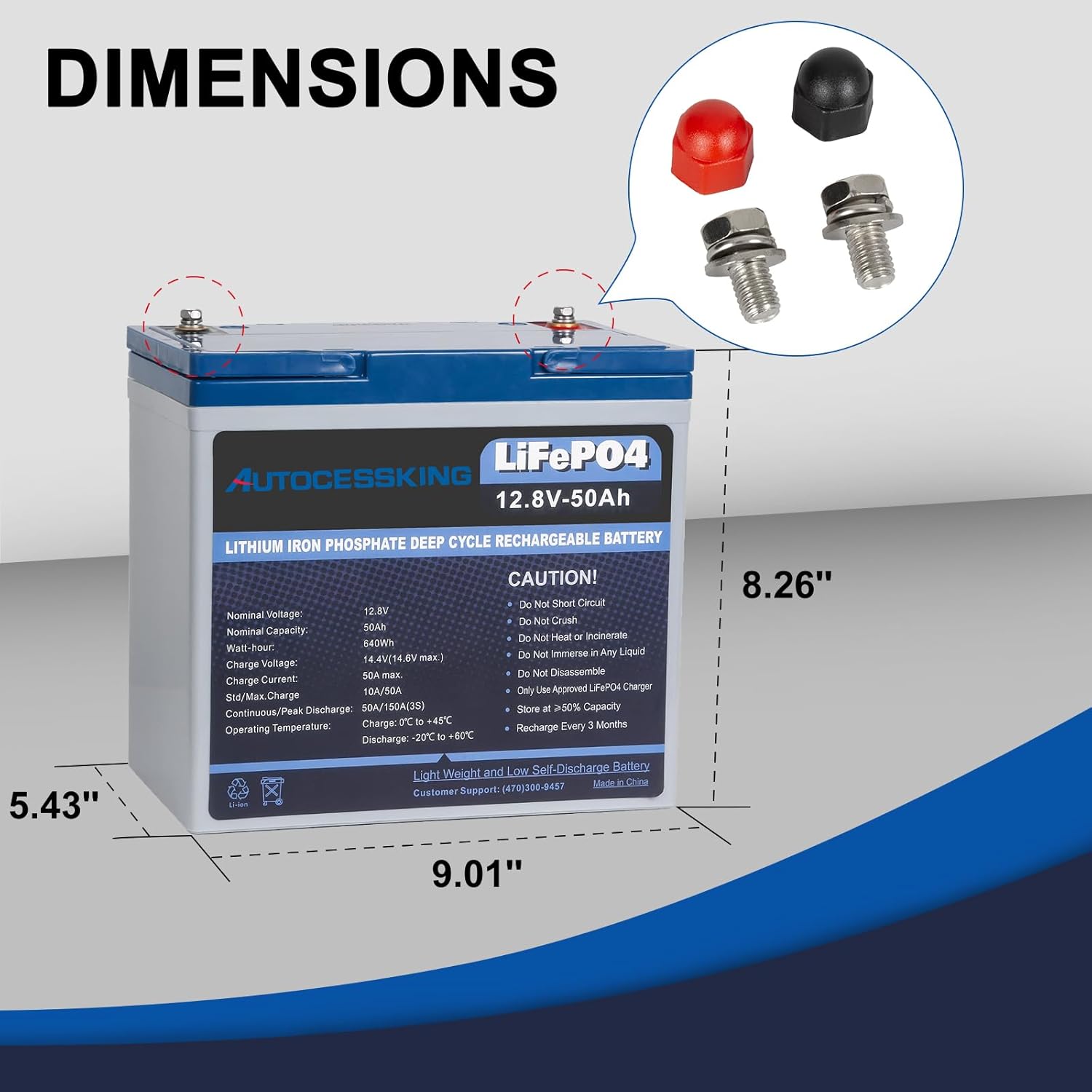 - ✅ LIGHTWEIGHT AND VERSATIL - Item Dimensions: 9.01"L x 5.43"W x 8.26"H. Our 12v battery engineered with Lithium Iron Phosphate (LiFePO4) technology, offering 1/3 the weight, 2x power and 8x longer lifespan compare to a lead acid battery. It is a perfect upgrade for any 12V Deep Cycle battery, and best choice for many applications such as RV, Camping, Solar System, Fish Finders, Ice Fishing or Home Backup Power.