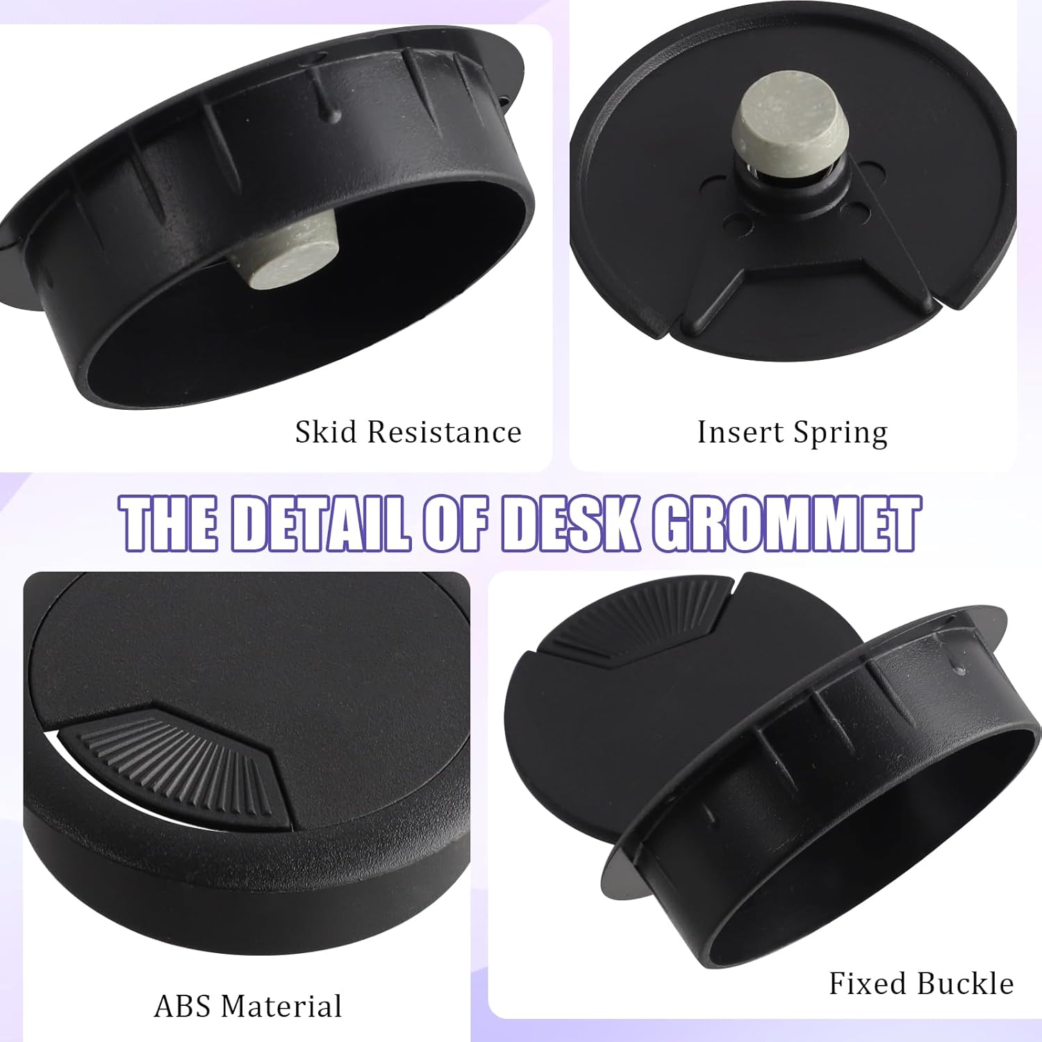 - Anti-Slip Slots: To ensure that desk hole cover does not slide or fall off easily during use, we have added anti-slip slots to the design. These slots are well designed and can be firmly fixed to the edge of the wire hole, and will not loosen even under frequent use.