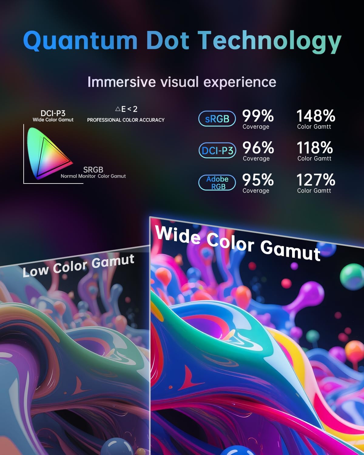 - HDR1400 for Lifelike Moments: This 27 inch mini LED monitor features impressive 148%sRGB color gamut and VESA Display HDR 1400, bringing the gaming characters to life, creating stunning images with rich details and diverse contrast, immersing you in realistic atmosphere