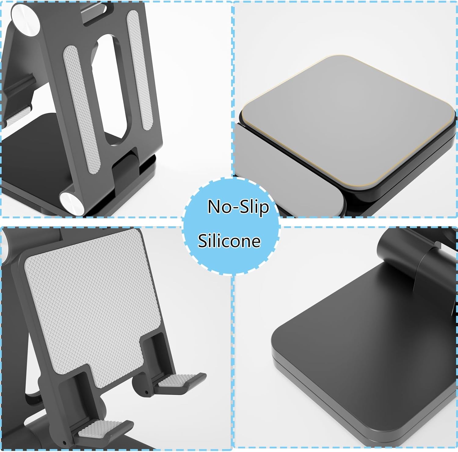 - 【Adjustable & Portable】The foldable design of the phone stand makes you easy to carry your phone and ipad everywhere, you can put the stand in the bag or on the body. Also,it allows you to customize the angle of your device flexibly to find the most comfortable viewing angle. The cell phone stand is made of high quality premium Aluminum + ABS material makes , it stays firmly in place, hold your phone steadily, no worry any wobble at all. The rubber pads can protect your phone from any scratching and sliding