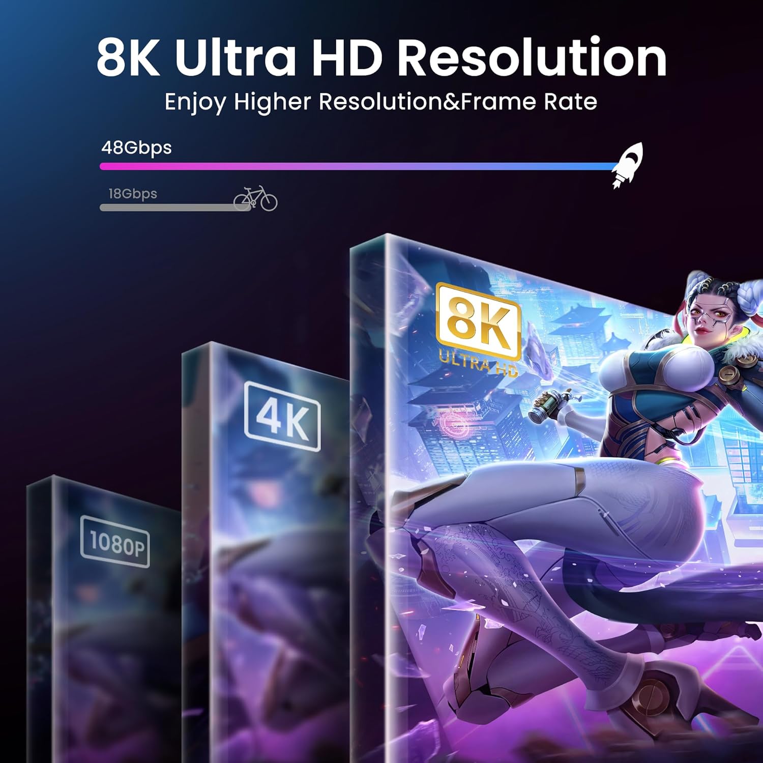 - 8K@60Hz & 4K@120Hz Ultra HD Support: Experience stunning clarity with 8K@60Hz and ultra-smooth gameplay with 4K@120Hz. This HDMI Switcher supports HDMI 2.1 standard with 48Gbps bandwidth, ensuring exceptional performance for next-gen gaming consoles and UHD streaming.