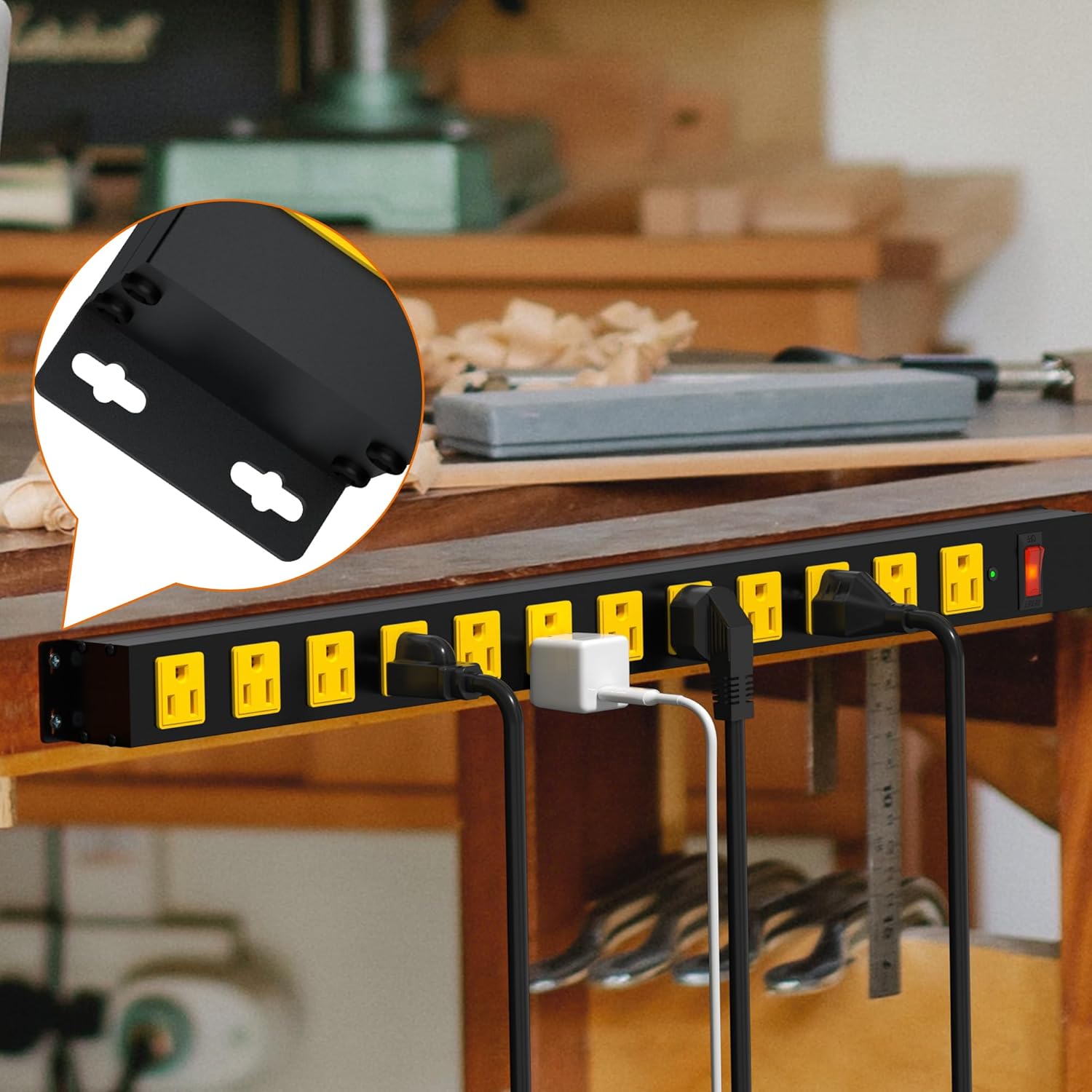 - Meet Multiple Needs: Makes it an ideal choice for a wide range of settings, including Ideal for office, home, school, commercial, shop, industrial, workshop, garage, bedroom, workbench, laboratory, factory, kitchen, under cabinet and etc this metal power strip can handle it all.