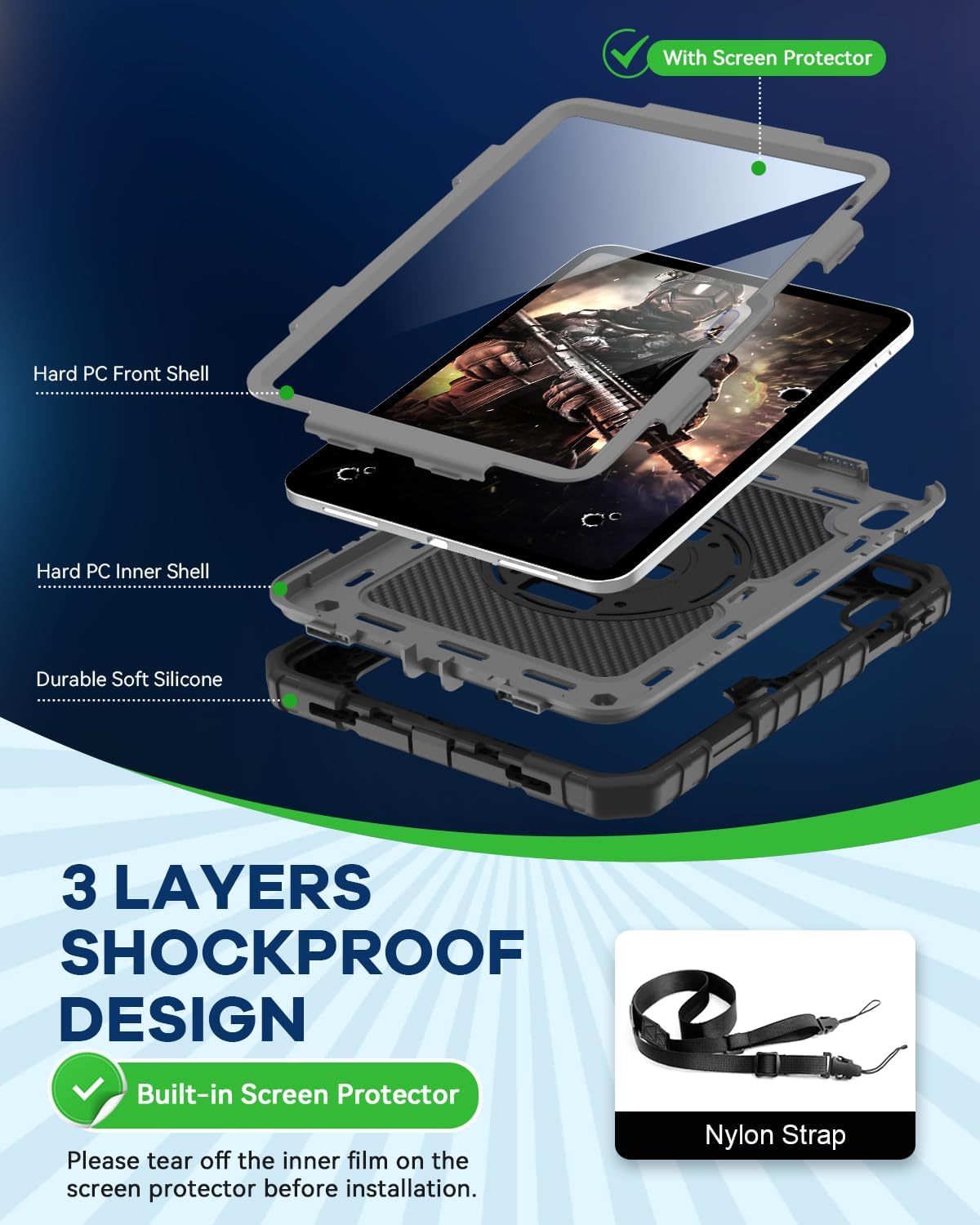 - Built-in Screen Protector: This case for iPad 10th generation kids made of durable hard PC & silicone, 3-layer full body protection structure with SCREEN PROTECTOR, provide a military grade protection & anti-scratch.
