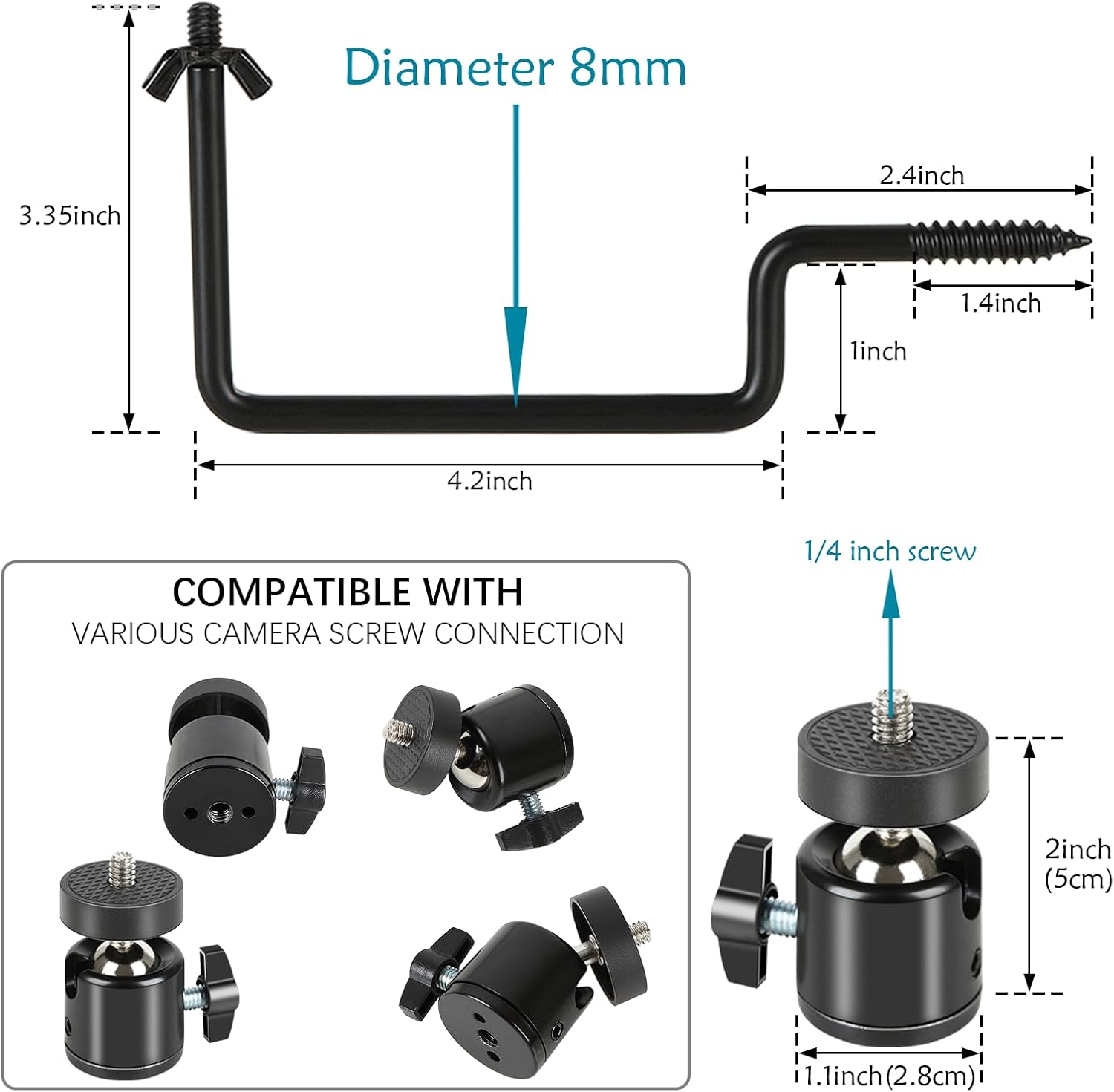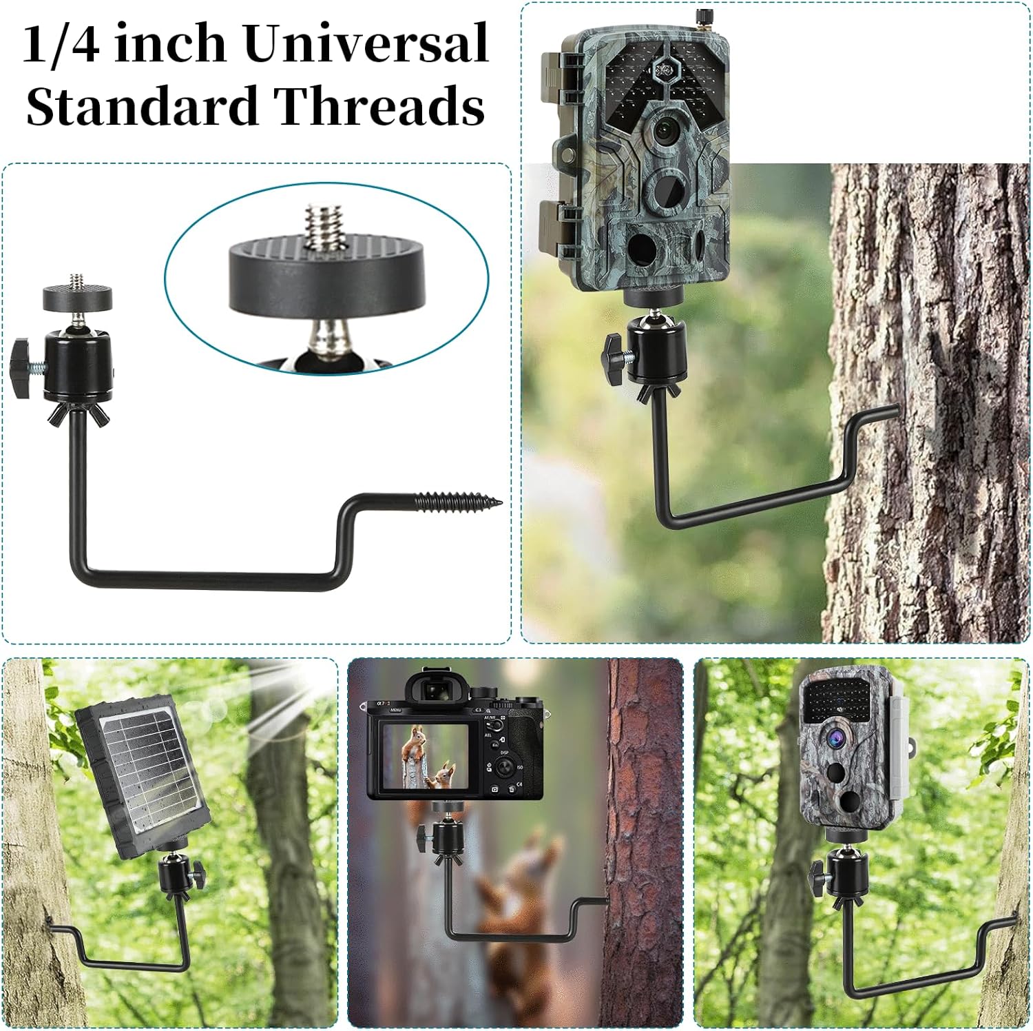 - Universal 1/4" Standard Thread: The trail camera tree mount features universal 1/4" standard threading, compatible with all tracking cameras and solar panels equipped with 1/4" screw holes.