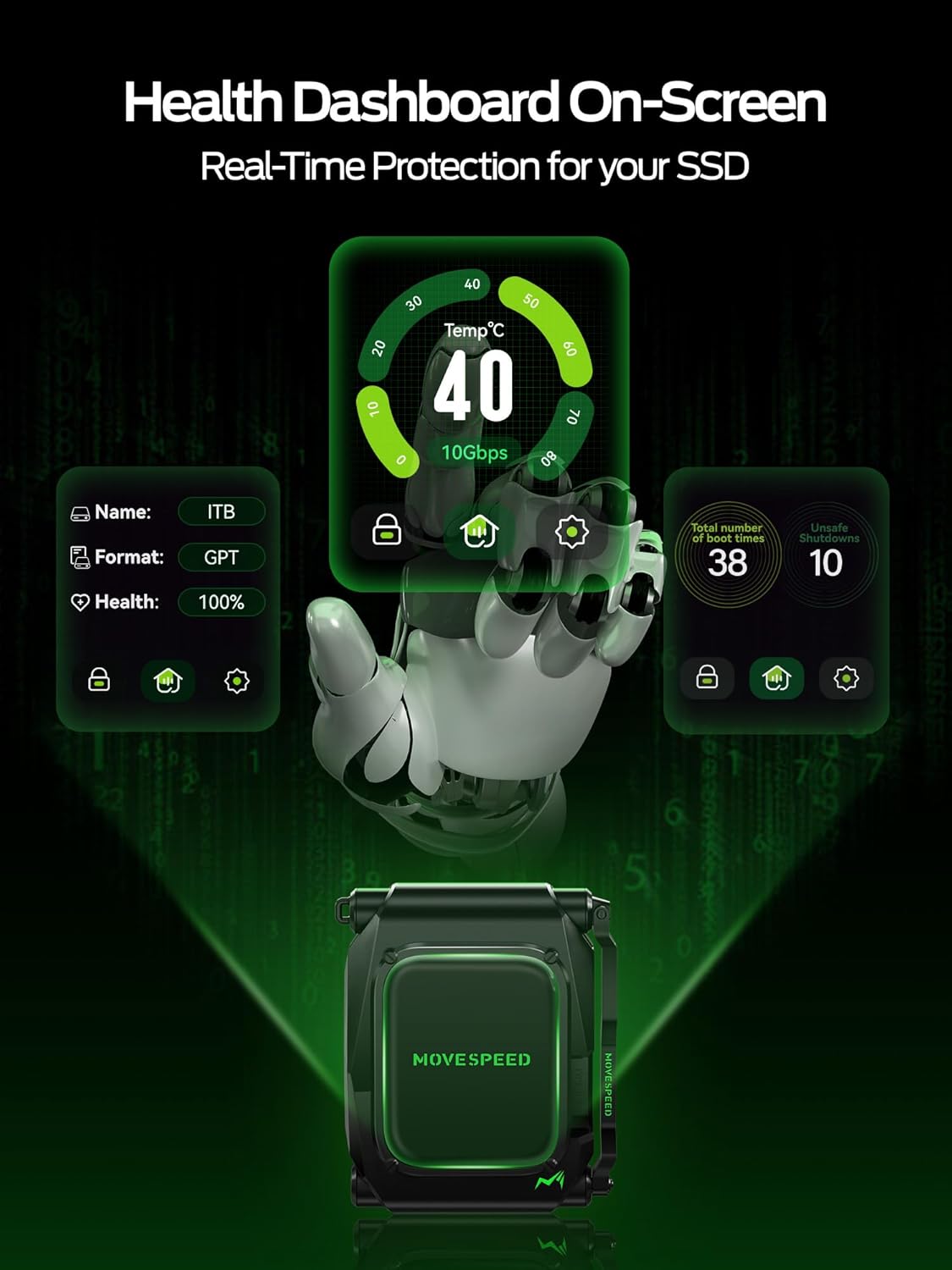 - 【Touchscreen Portable SSD】Interactive touchscreen display shows real-time stats including transfer speeds (up to 10Gbps), temperature, and power status - making data management as cool as it is convenient