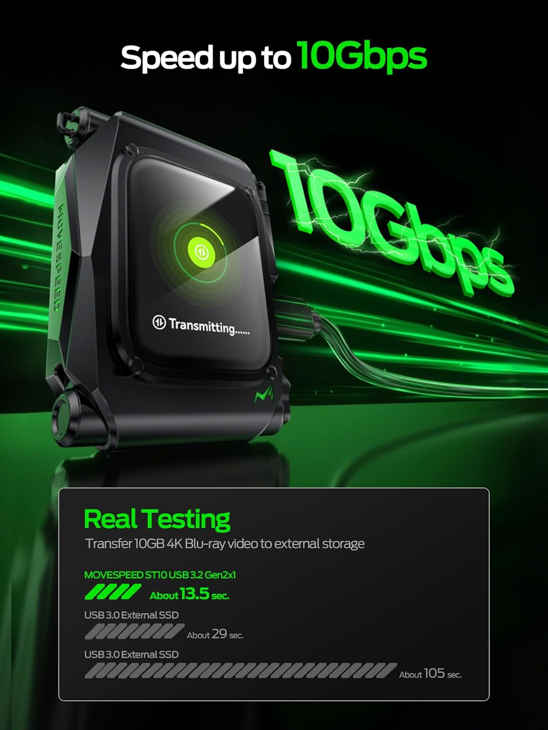 - 【USB C】USB-C 3.2 Gen2 interface delivers blazing-fast 10Gbps speeds - transfer full-length movies in seconds