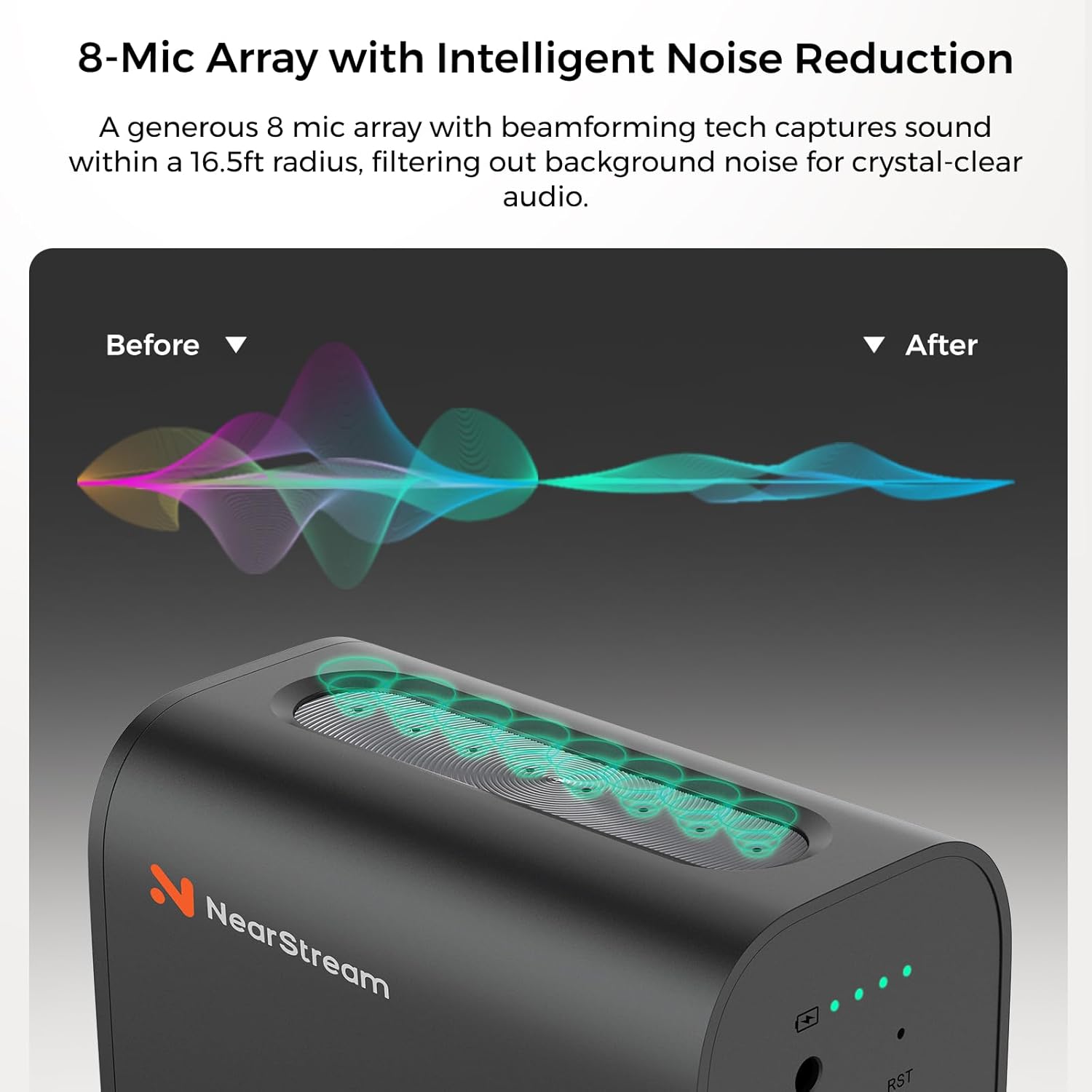 - 【HD Audio Capture with 8-MEMS Microphone Array & External Mic Support】: Equipped with an advanced 8-MEMS microphone array, this camera for streaming captures immersive, 360° audio within a 16-foot range. Built-in AI noise suppression ensures clear, focused sound by minimizing background noise—even in noisy environments. For added versatility, a 3.5mm audio input on the VM33 lets you connect external mics like the NearStream AWM20T wireless lavalier for professional-grade audio.