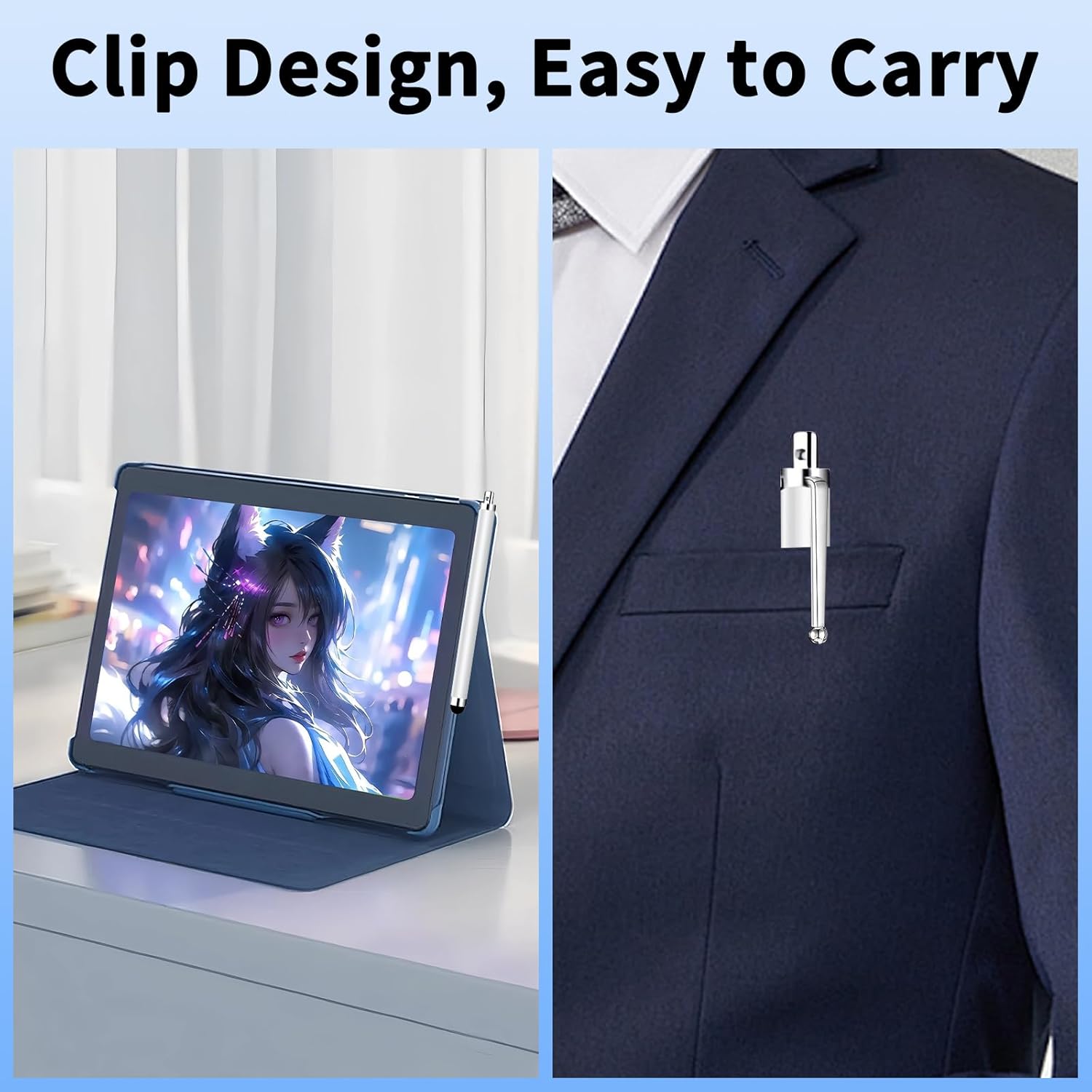 - Easy To Carry: The lightweight design makes the stylus easy to carry with an anti-loss hanging hole and pen clip design to avoid losing it and use it anywhere. Whether you are at work or traveling, it provides you with a convenient touch experience.