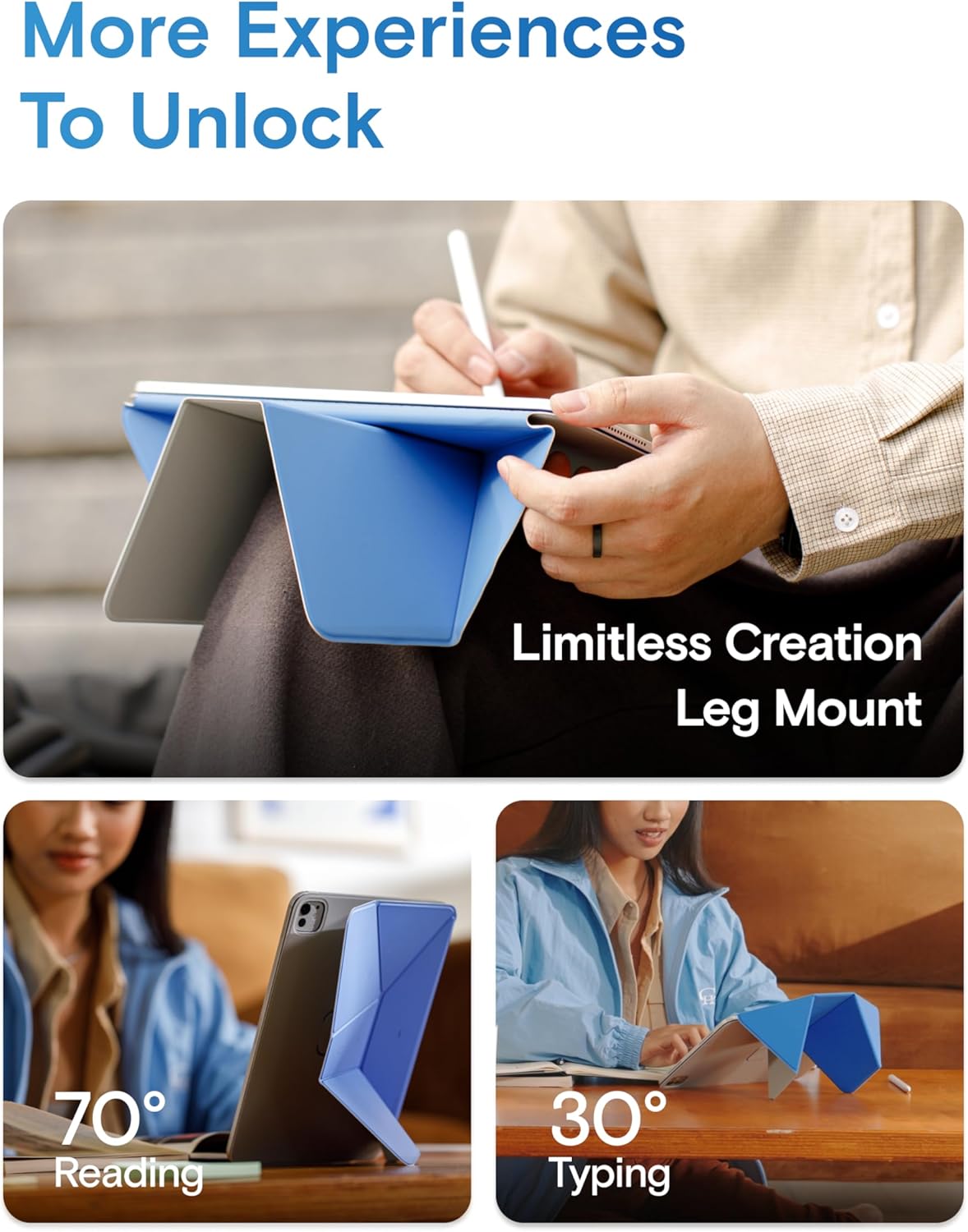 - Ultimate Ergonomic Floating Modes - MOFT Dynamic Folio Case makes iPad ergonomics effortless for mobile creativity - featuring a single-piece structure that effortlessly folds into a workstation lifting iPads up 2-inches. Frictionless angle shifts between 30° and 60° keep you aligned in your input-output framework.