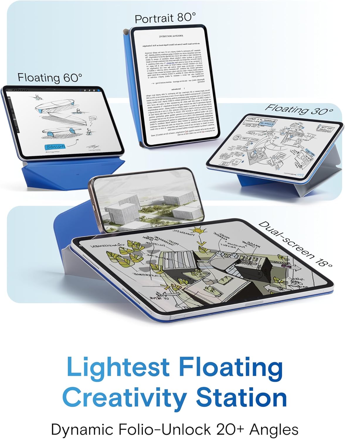 - Dynamic Angles, Move with Flow - The Dynamic Folio with 20+ adjustable angles for iPad offers fluid angle adjustments that flow with your every need. Effortlessly shifting from work to creativity, it combines minimalist design with versatile functionality, enhancing your dynamic lifestyle.