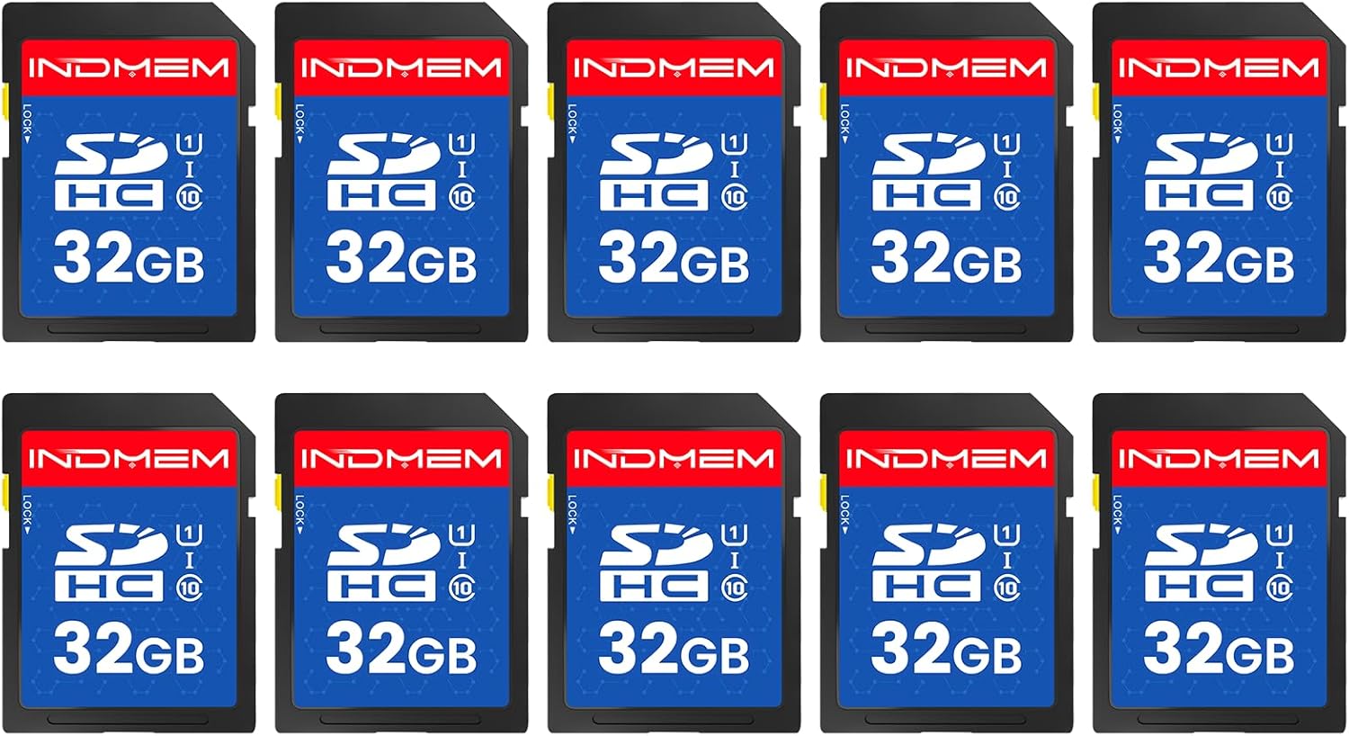 INDMEM SD Card 32GB, 10-Pack UHS-I Class 10 MLC Flash Memory Card, High-Speed Secure Digital Cards for Cameras, DSLR, Action Cams - Reliable Storage