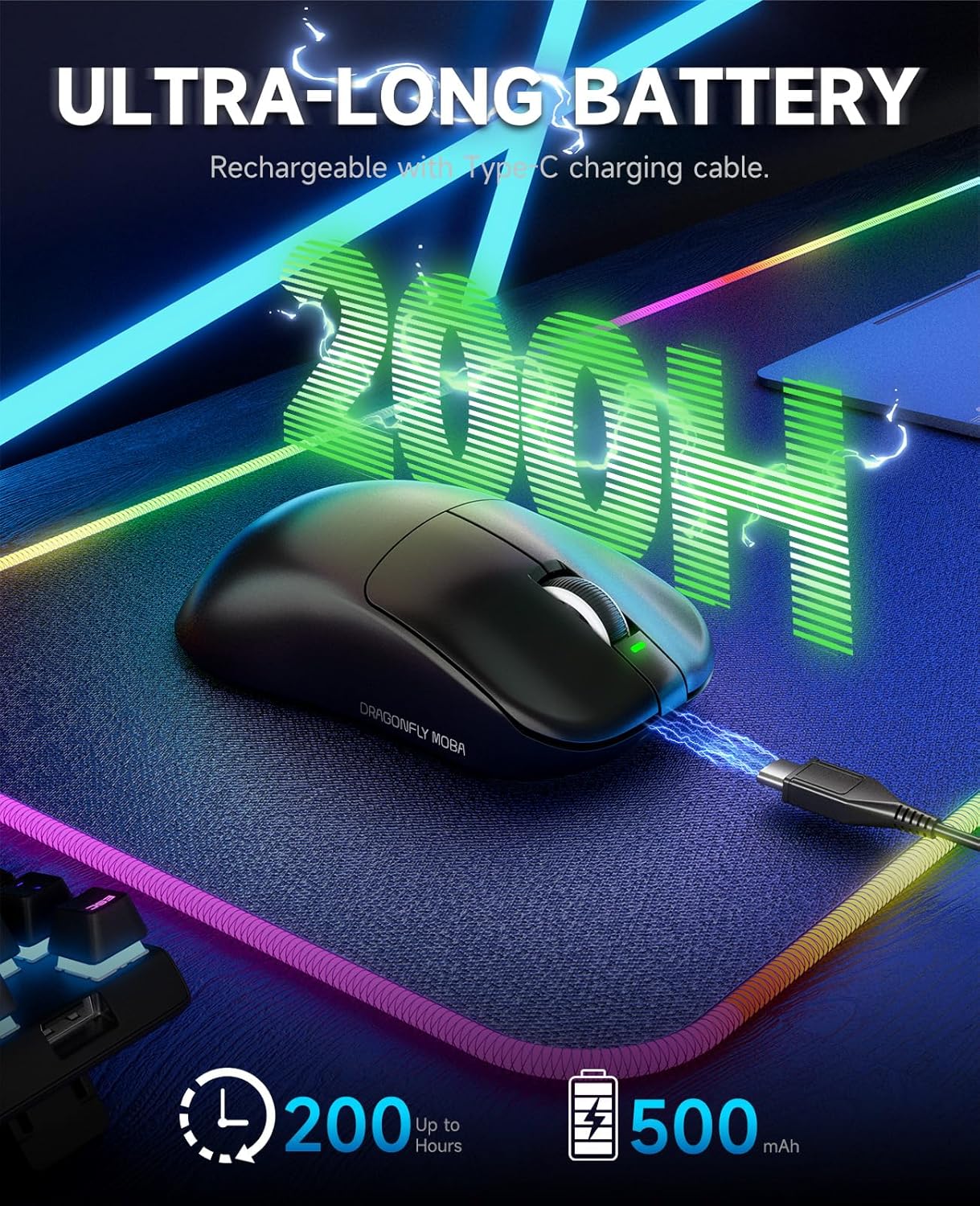 - Long-lasting Battery & Saves Smarter: 200 hours on VGN F1 MOBA Wireless, last longer in the heat of battle with a mouse designed to play the long game. *May vary depending on usage conditions. Advanced sleep mode (set via driver download) automatically conserves energy during inactivity.