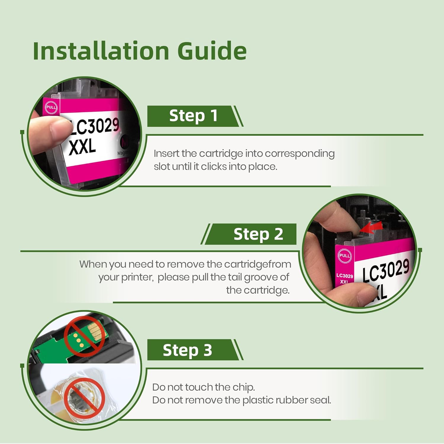 - With Latest Chips: Gagalay for brother lc3029xxl is equipped with the latest upgraded chips to ensure perfect compatibility with printers and excellent print quality, you can enjoy worry-free and efficient printing