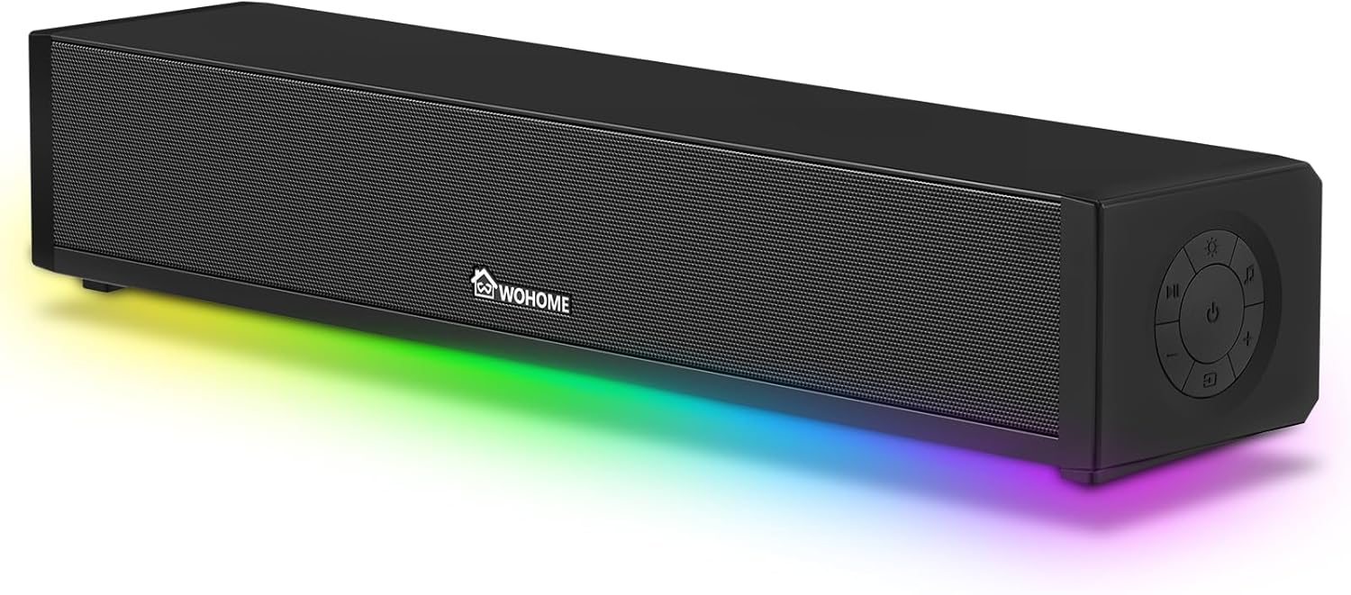 Wohome 2.1 Computer Speakers for Desktop PC, Bluetooth 5.3 PC Sound Bar with 7 RGB Light Modes, DC Powered Laptop Gaming Speakers with 3.5mm AUX-in/USB Connected for Projector, Tablet