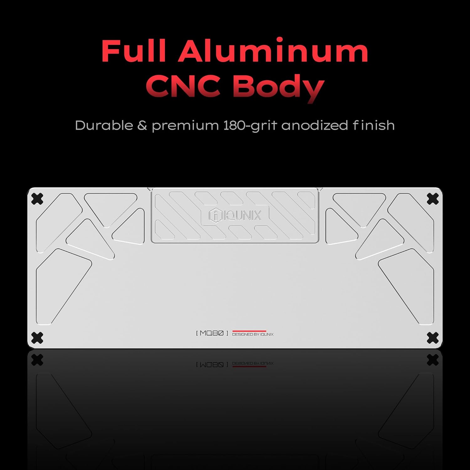 - Precision Aluminum Craftsmanship: MQ80 features a CNC-machined aluminum body with a 180-grit anodized finish—smoother and more durable than standard 150-grit surfaces. It delivers a stable, high-end typing experience that looks refined on any desk.