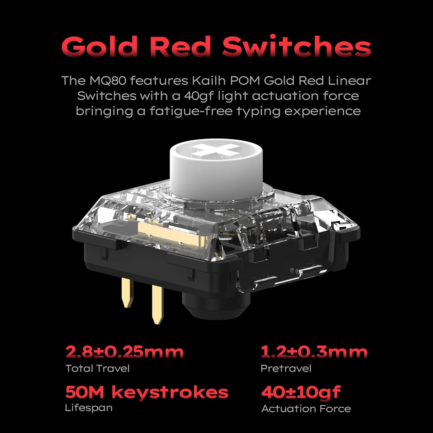 - Custom Feel with Hot-Swappable Switches: Pre-lubed Gold Red switches deliver a creamy, quiet feel with a light 30gf–50gf actuation—ideal for long sessions. Easily customize your wireless mechanical keyboard anytime with the hot-swappable design, no soldering required.