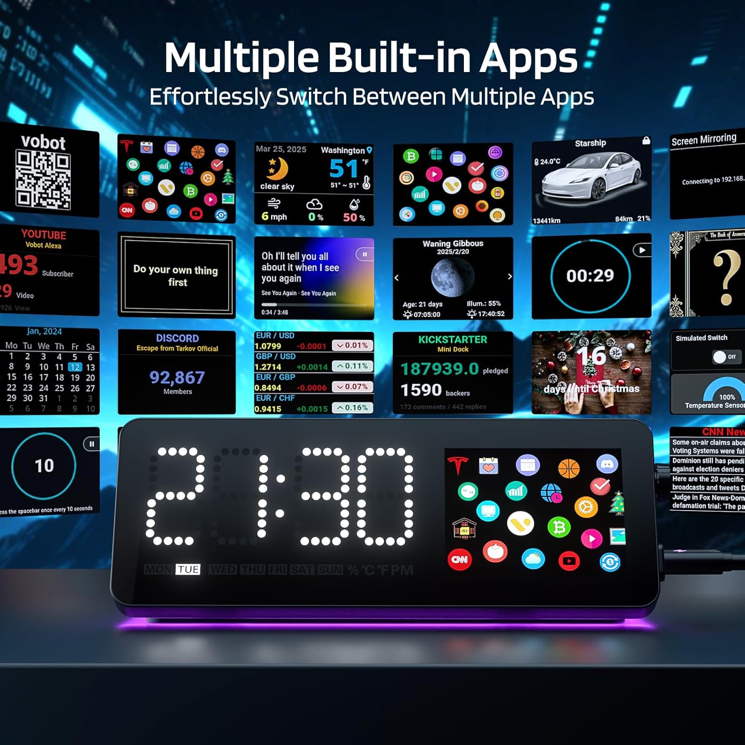 - Multiple built-in Apps: The Mini Dock features multiple built-in apps, including Data Tracking, Entertainment, and Time Management, among others. Effortlessly switch between real-time applications with the simple touch of a button, granting you enhanced flexibility and efficiency in your workflow. You can also develop your own custom apps.