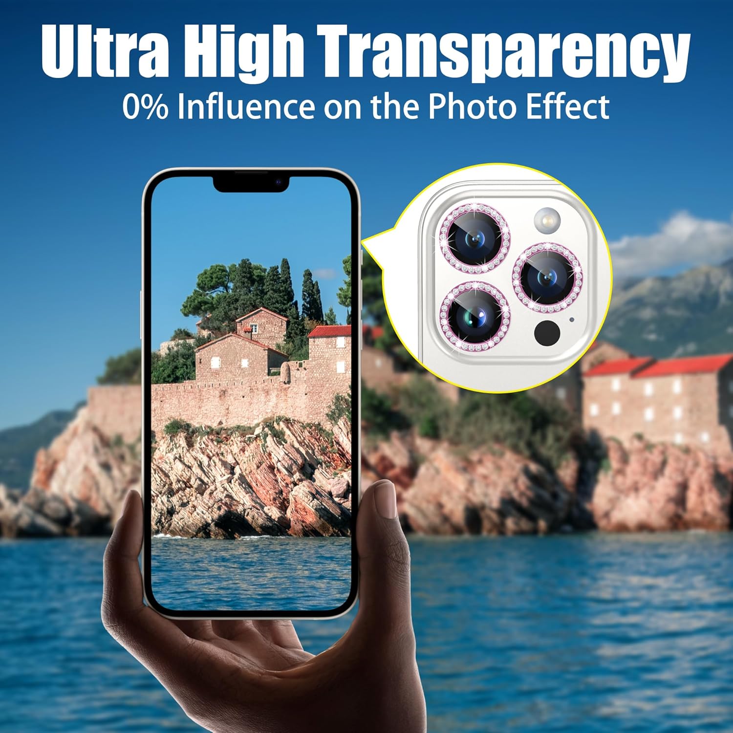 - ⭕[Two Bling Effects] There are 3 bling diamond rings and 3 bling glitter rings in the package. Free to match according to your own personal preferences. These rings glass are optical grade, protect your iPhone 15 Pro / 15 Pro Max camera lens from damage and scratches and has no effect on taking photos. Fully high transmittance sapphire glass with AR anti-reflection function: Camera anti-fall protection and Bling Bling Effect and Fully restored image quality.