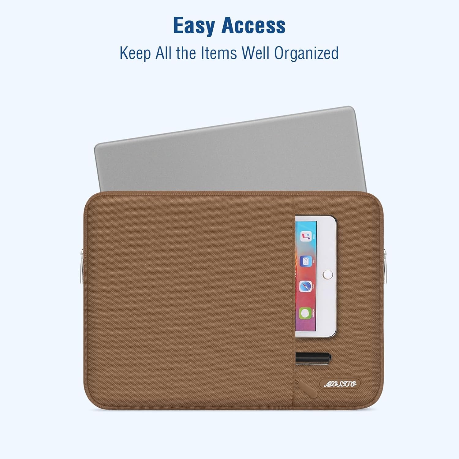 MOSISO Laptop Case 13.3 inch, 13-13.3 inch Laptop Sleeve Compatible with MacBook Air/Pro 13 / Pro 14, HP Dell ASUS Lenovo Notebook, Polyester Vertical Computer Sleeve Bag with Pocket, Mocha