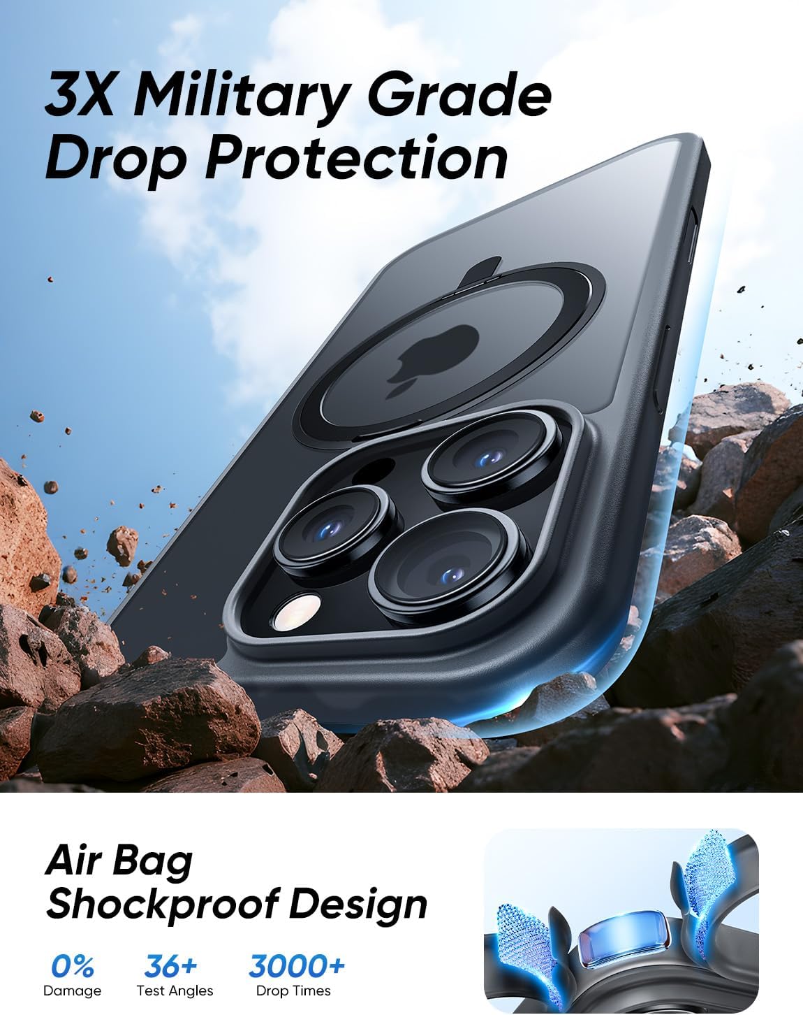 - [Tougher Than Ever] The case iphone 16 pro max built-in 360° impact-absorbing airbags and X-Shock 3.0 four-corner airbags protect your Phone against everyday drops and bumps. Furthermore, the shockproof polycarbonate back and the air pad increase its durability. A 1.8 mm offset border over the camera opening prevents the lens from being scratched, and a 0.8 mm bezel over the screen keeps your Phone screen from damage. Magic JOHN case's DURABILITY AND STURDINESS surpass most general Phone cases.